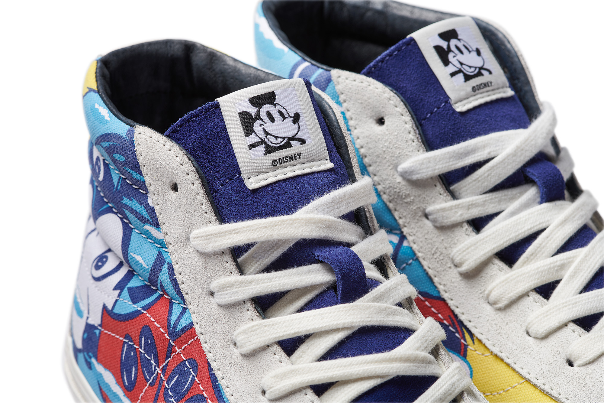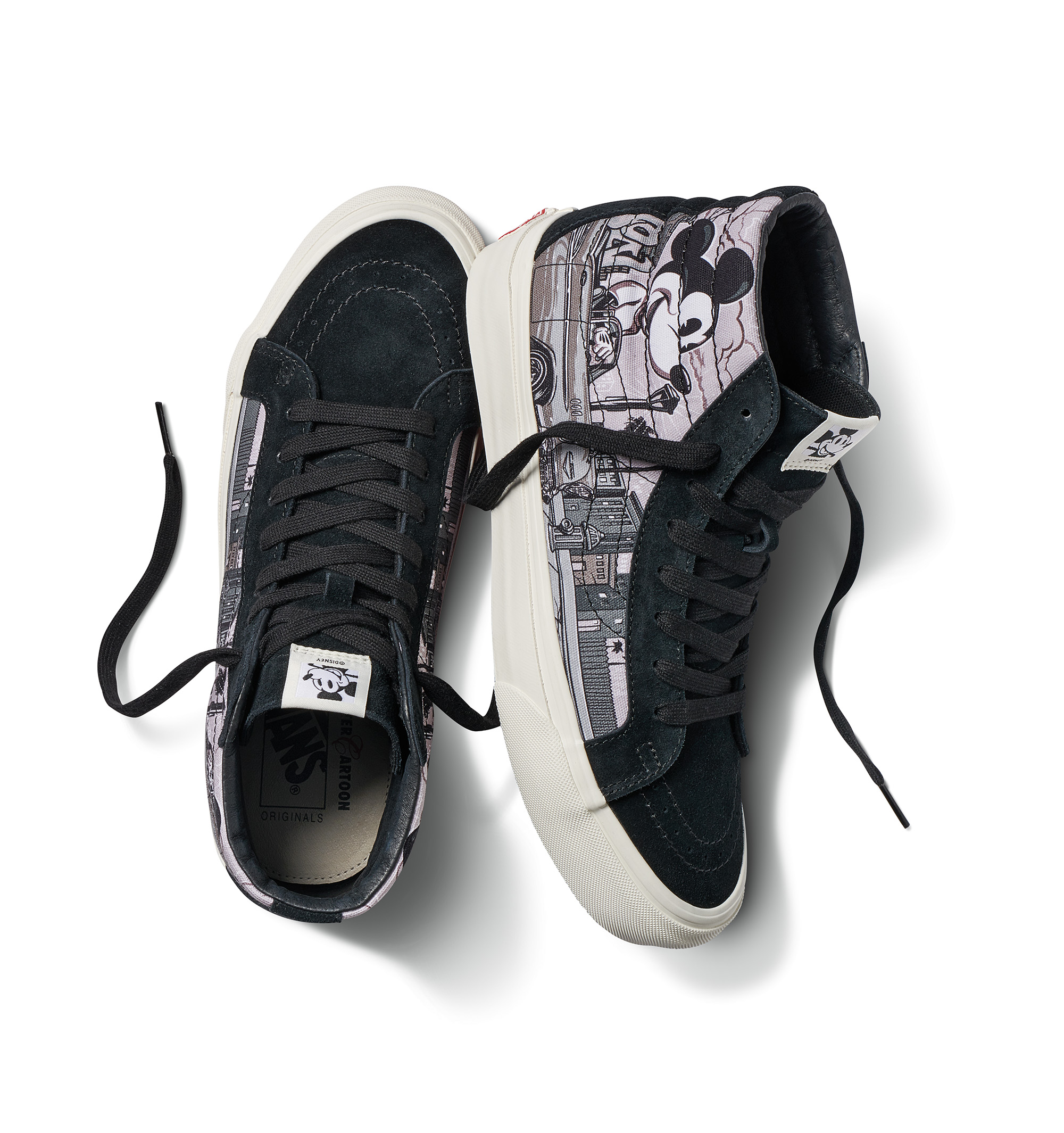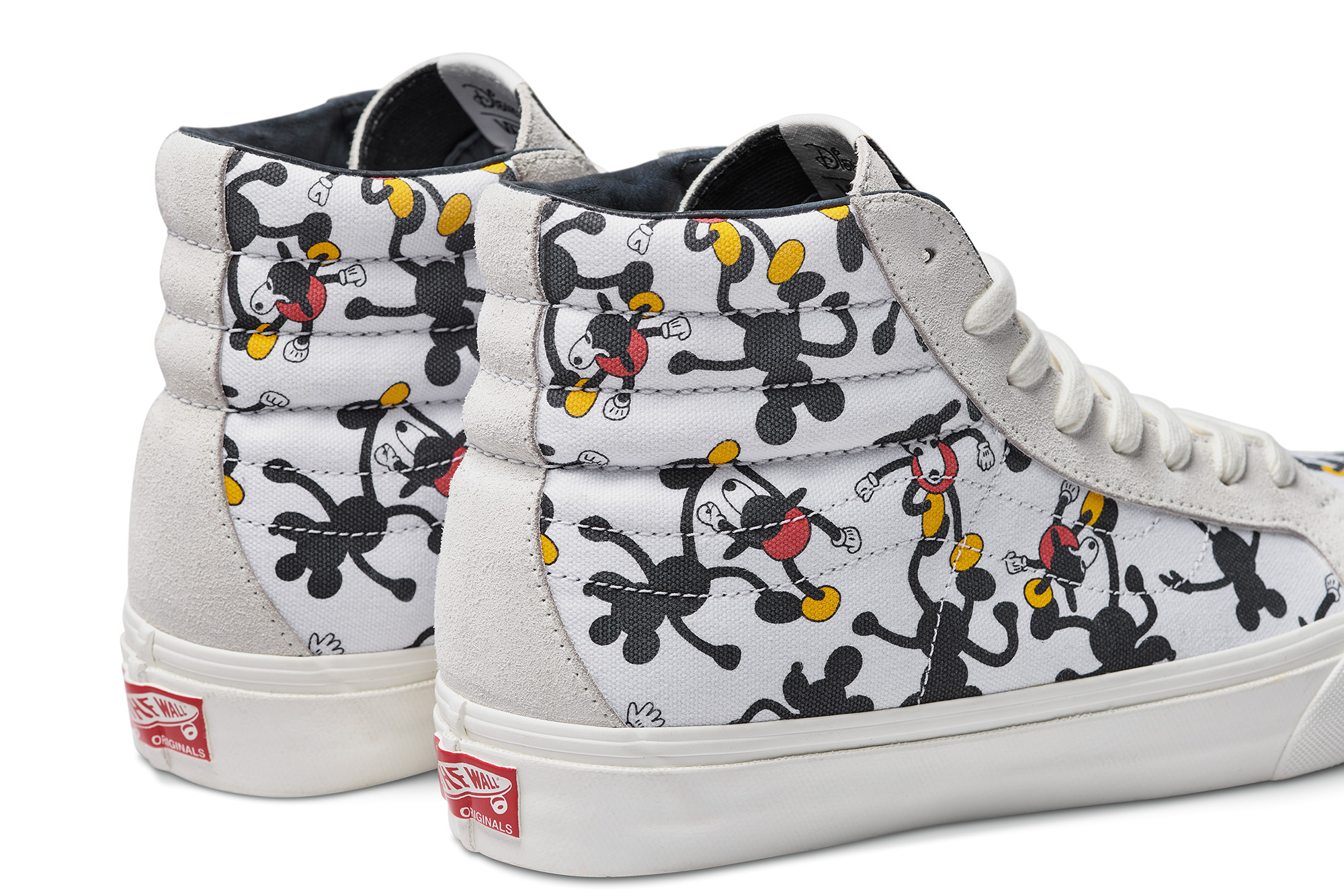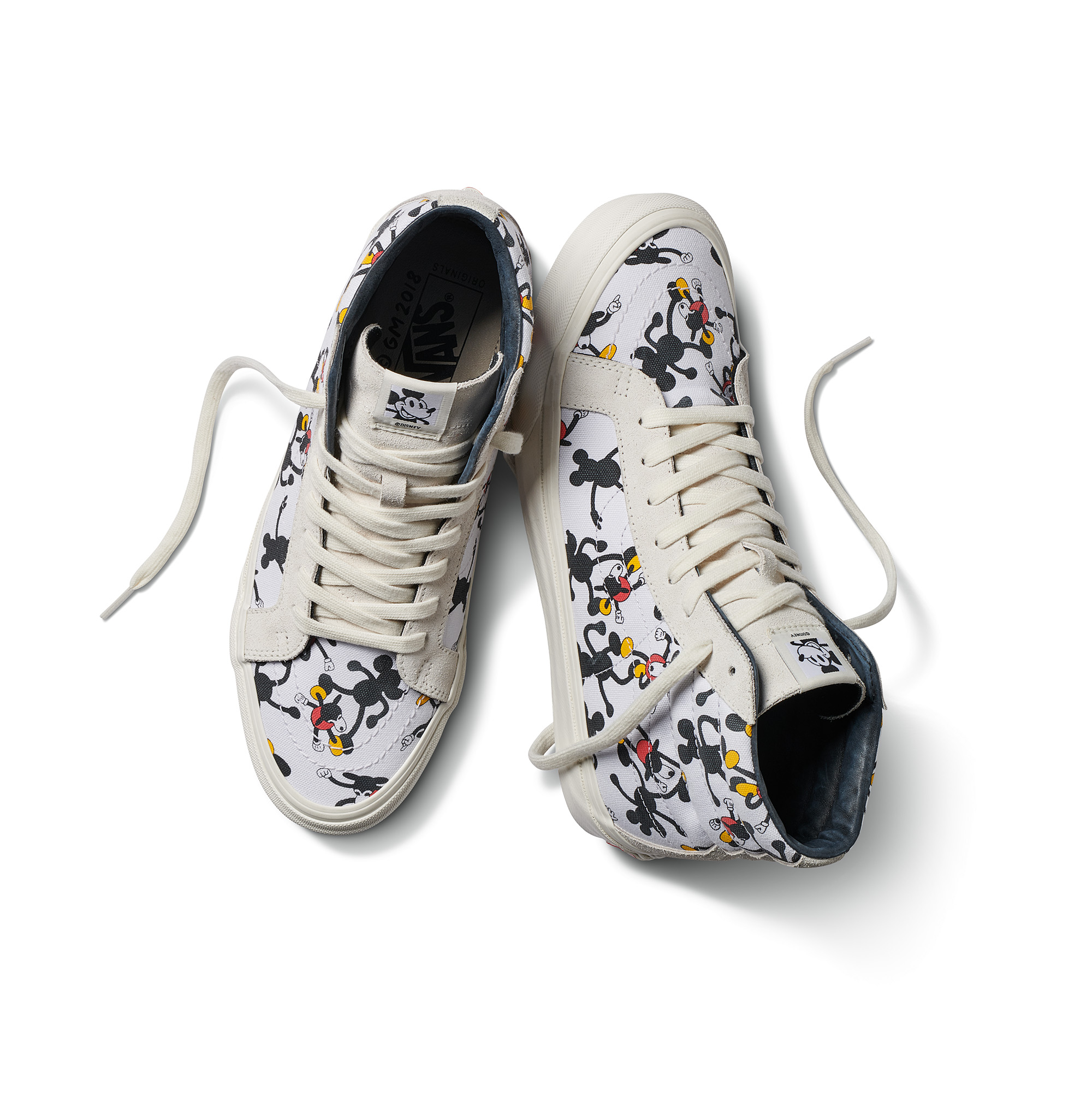 In a unique, well-rounded collection, each of the artist’s custom Mickey Mouse rendition is featured on Vans’ iconic silhouette, the OG Sk8-Hi LX, as well as a short-sleeved tee to present a well-rounded offering.