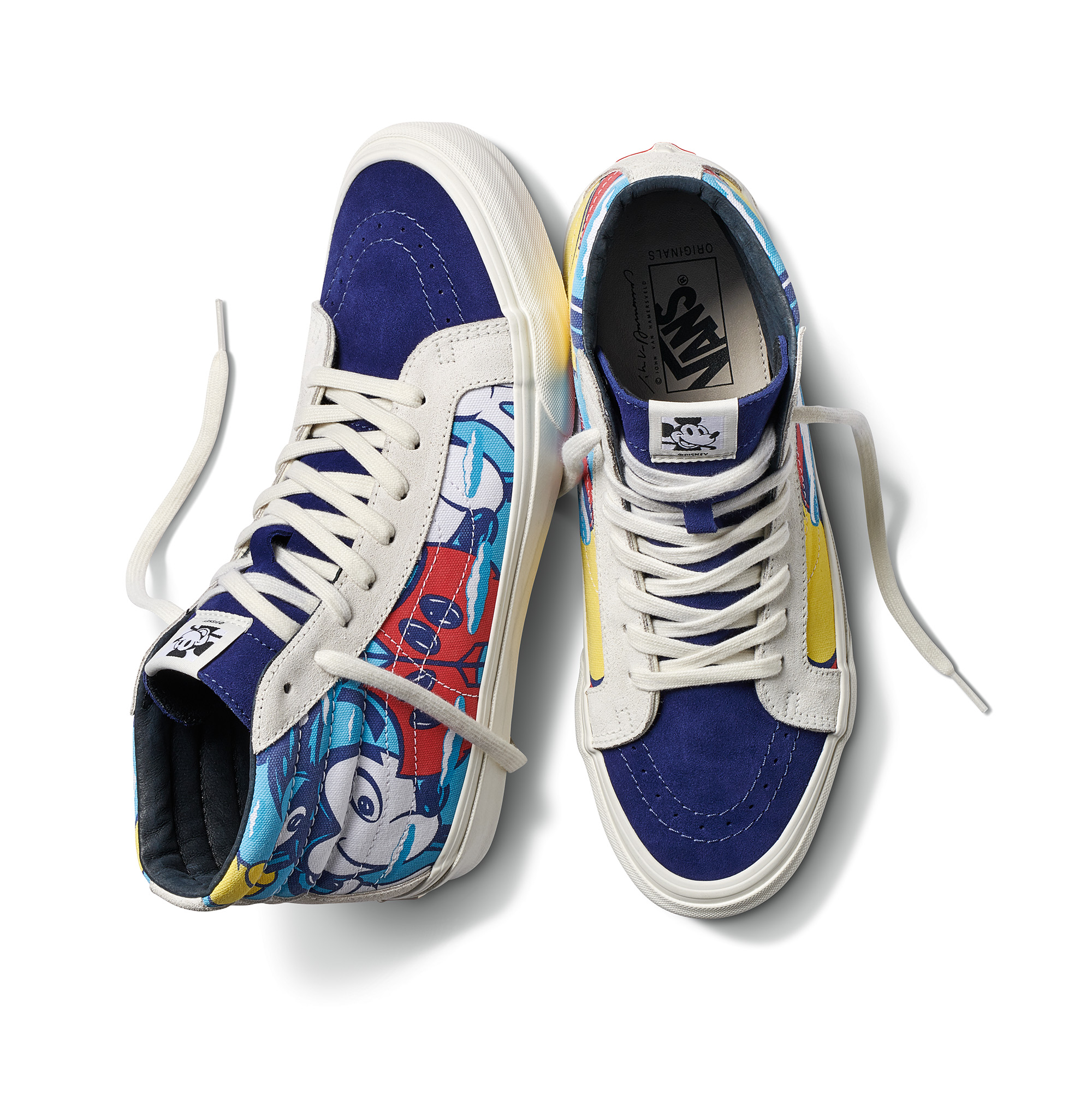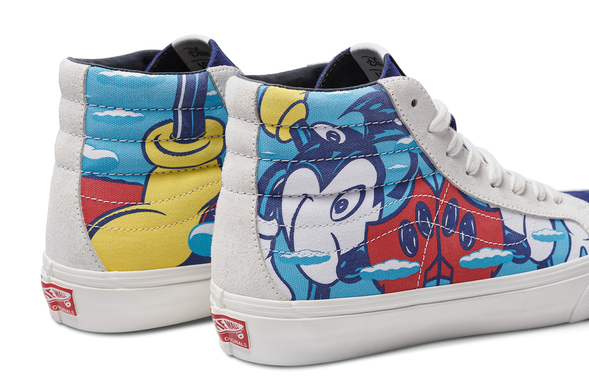 Vault by Vans mainstay, Taka Hayashi, completes the collection with his commitment to detailed craftsmanship and unique design approach. Hayashi’s design features an unexpected hit of pink, conveying a Mickey Mouse inspired hot air balloon.”