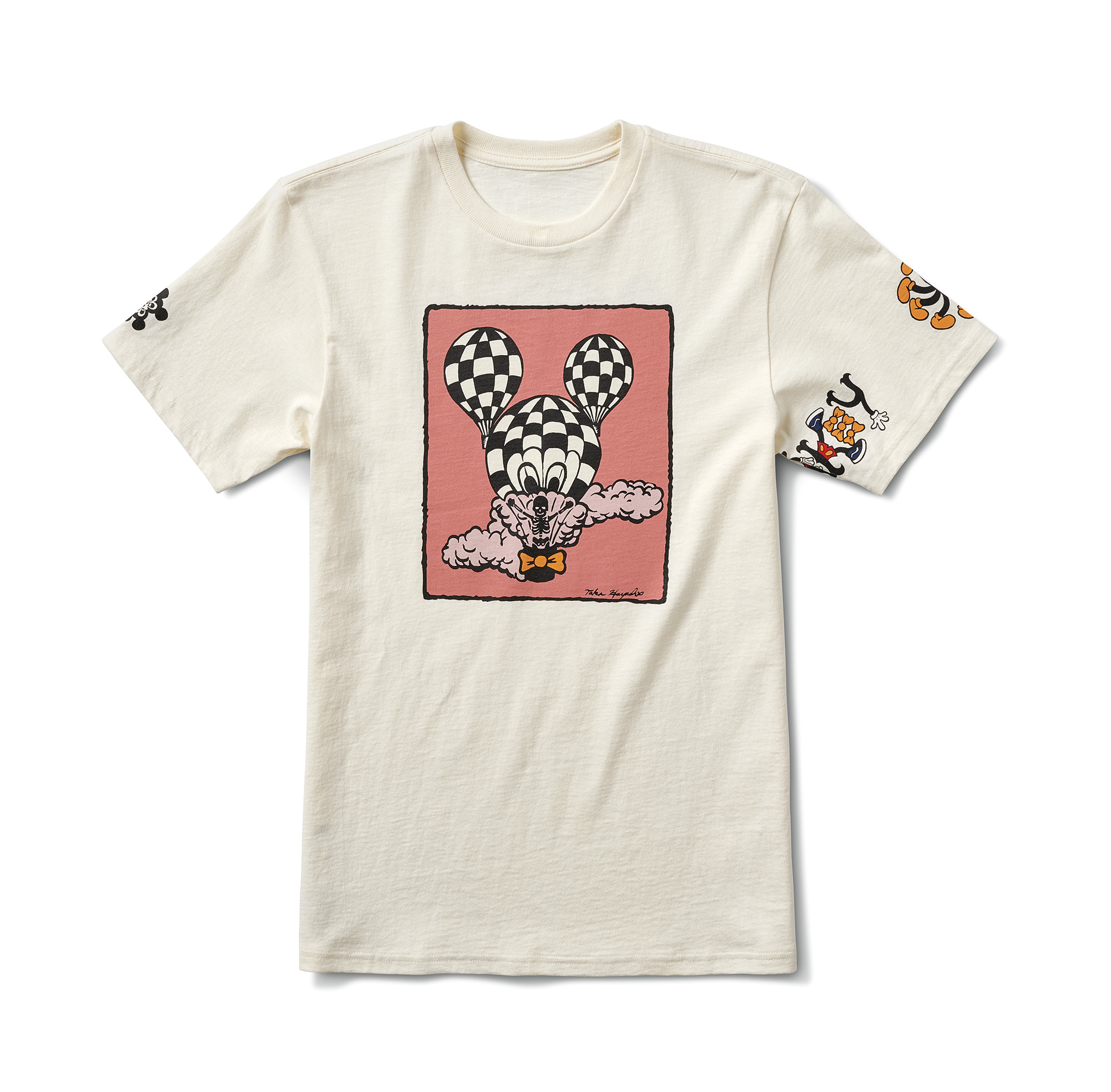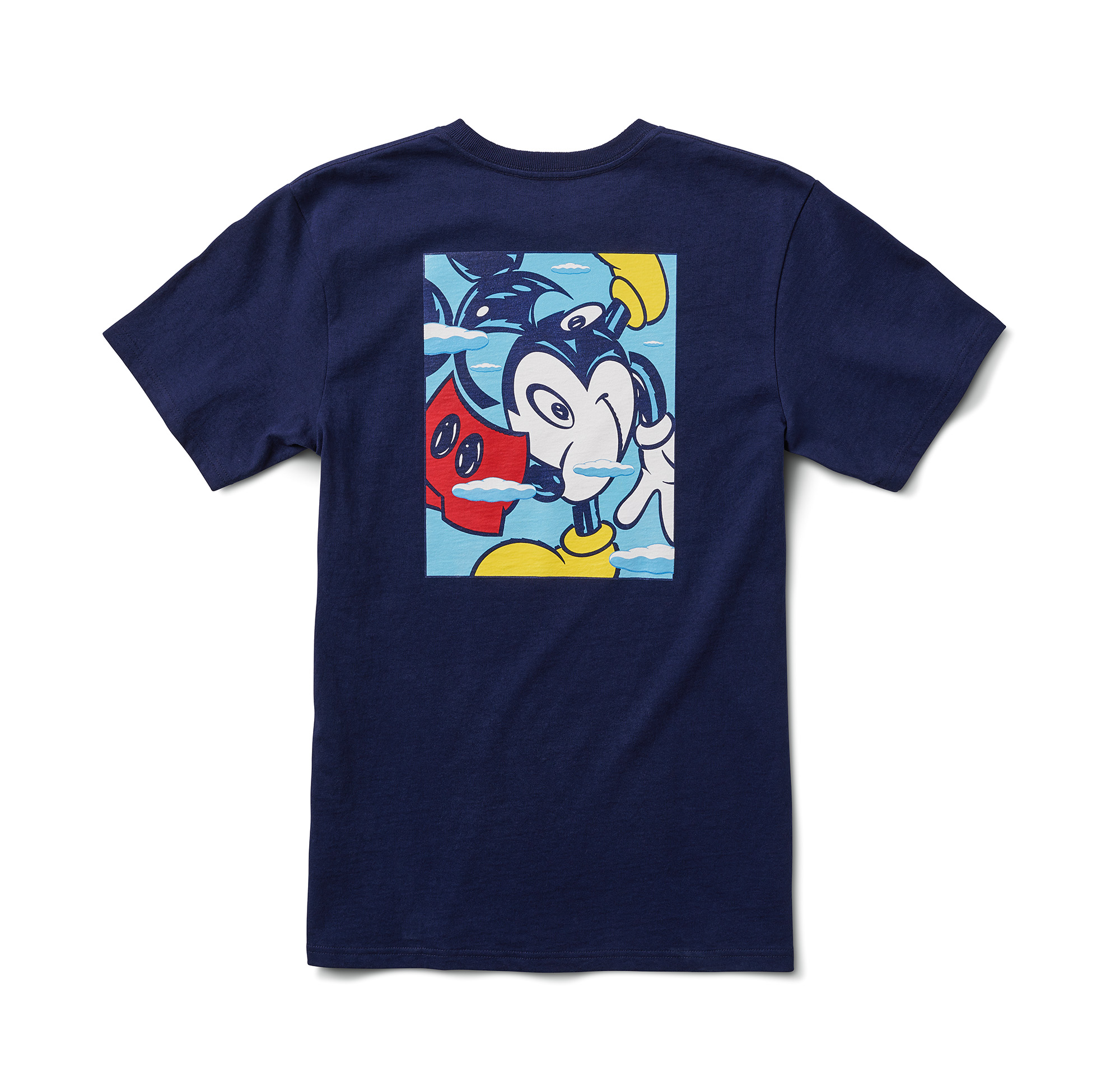 With a mutual passion for California culture, renowned illustrator and graphic designer , John Van Hamersveld is continuously recognized for his influential graphics and images that are quintessential markers of Southern California culture. Best known for his psychedelic patterns and vibrant color schemes, he is a pioneer in the worlds of art, music, and surf—blending these genres perfectly into his extensive repertoire. For this collection, Van Hamersveld produces bright, punchy graphics featuring the one and only Mickey Mouse.