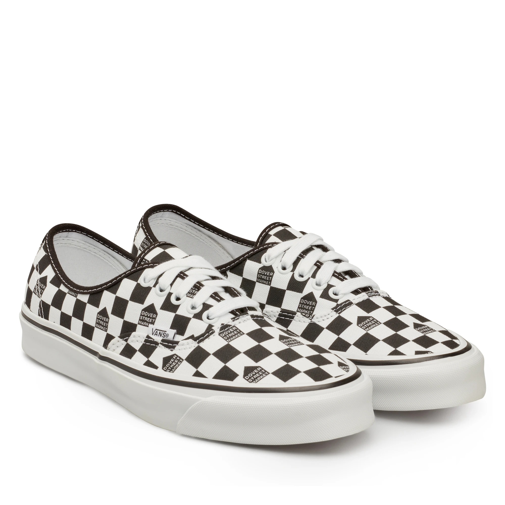 Dover Street Market has released a 3 pack of classics with Vans Vault, featuring their DSM Hut logo version of Vans’ iconic checkerboard print.  We’ve seen this design come up a few times over the years, and this time we see an OG Old Skool LX, OG Authentic LX, and an OG Classic Slip-On LX, in a combination of black and white.  Each pair features the same white vulcanized sidewalls, with a black foxing stripe.  If you’re looking for a new pair of checkers that are sicker than your average, then these are right up your alley!  Available now from all DSM sites and locations.