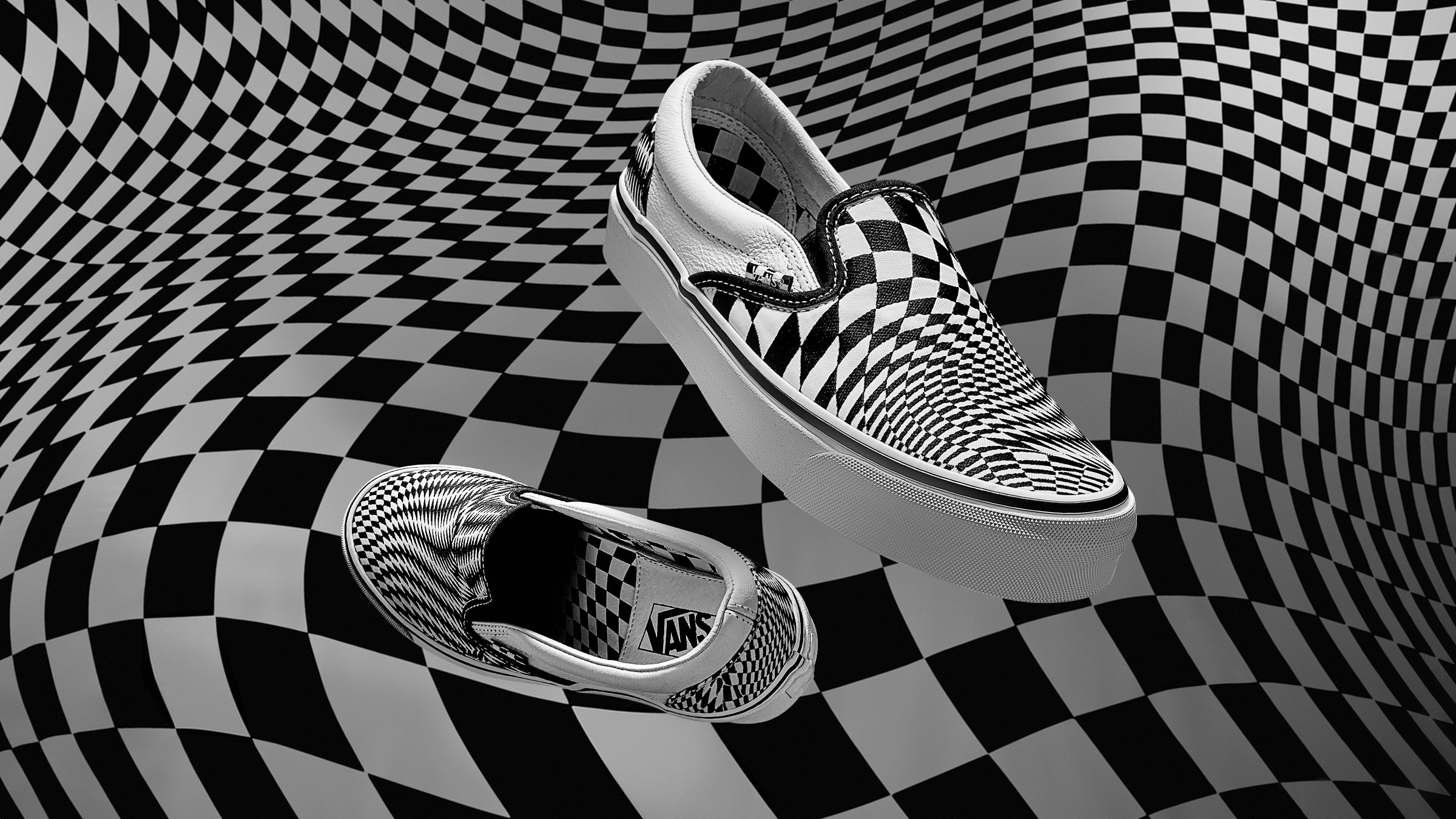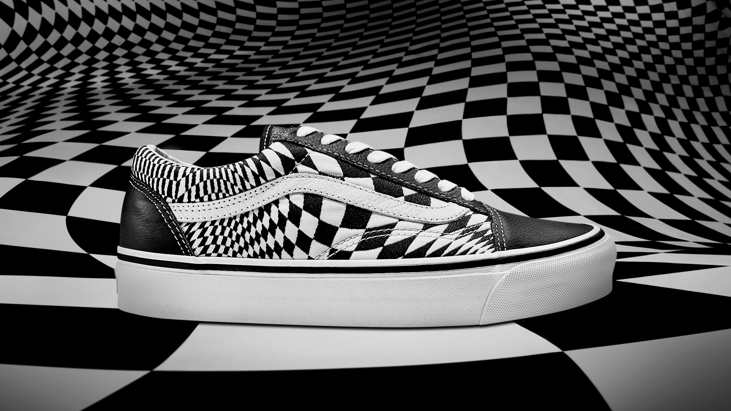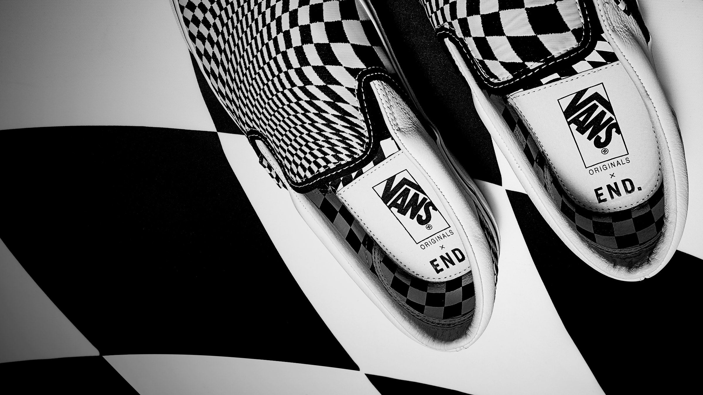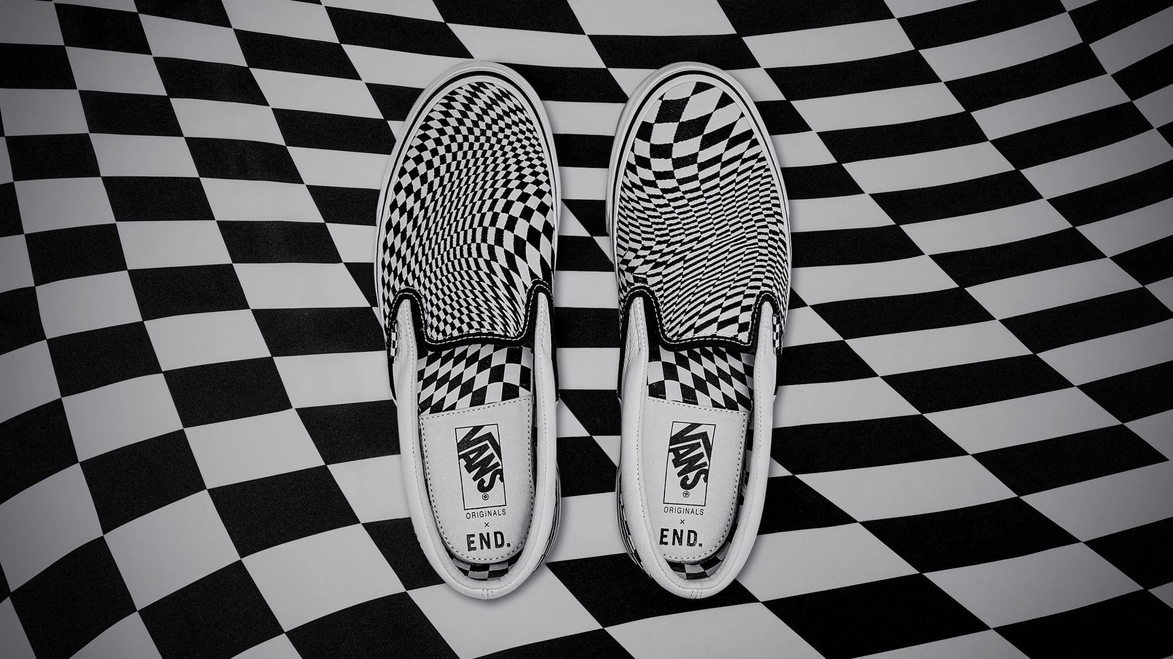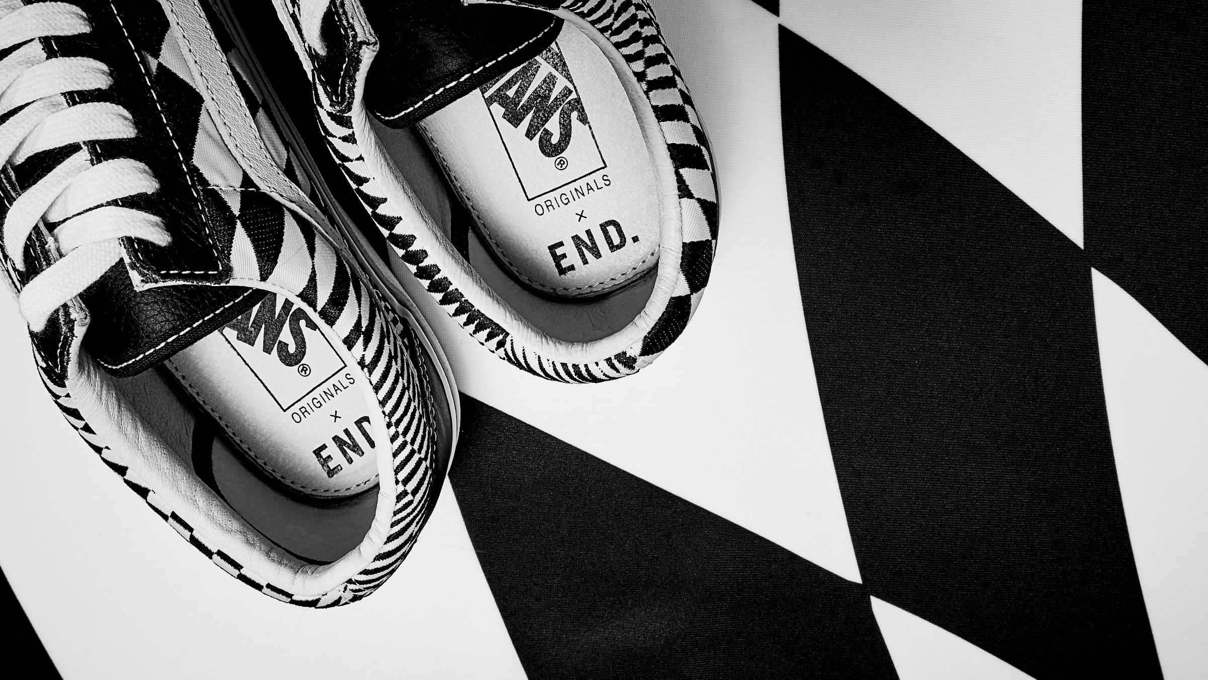 Taking the next collaboration to dizzy new heights, VANS and END. Clothing join forces once again to release the mind-bending ‘Vertigo’ pack. A fresh new perspective on the VANS checkerboard motif, the OG Classic Slip-On LX and OG Old Skool LX are designed to set heads spinning with an optical-whirl warping the canvas uppers. A visual illusion bending the borders, the unsteady checkerboard is accented with true white stitching, panels of tan leather and a premium pig-skin lining.