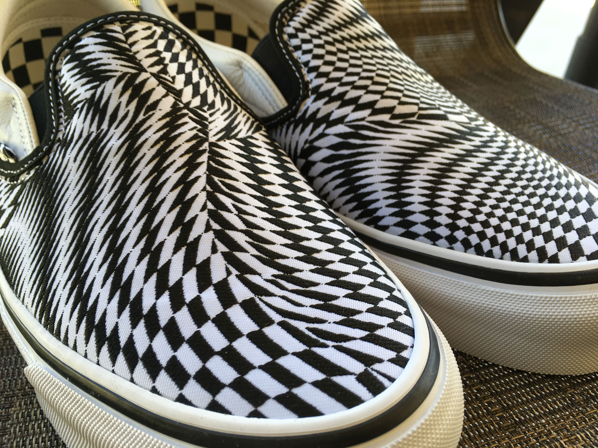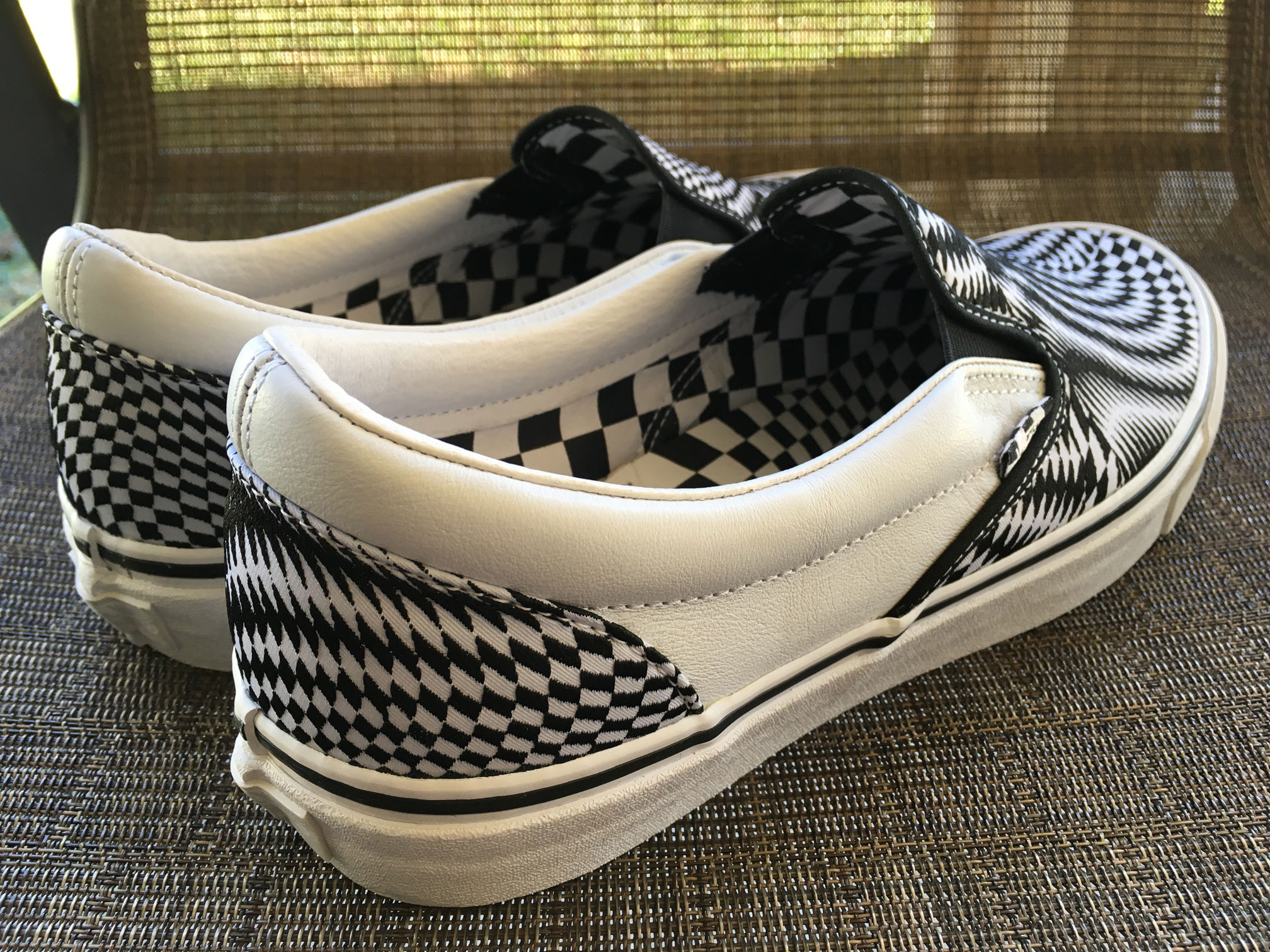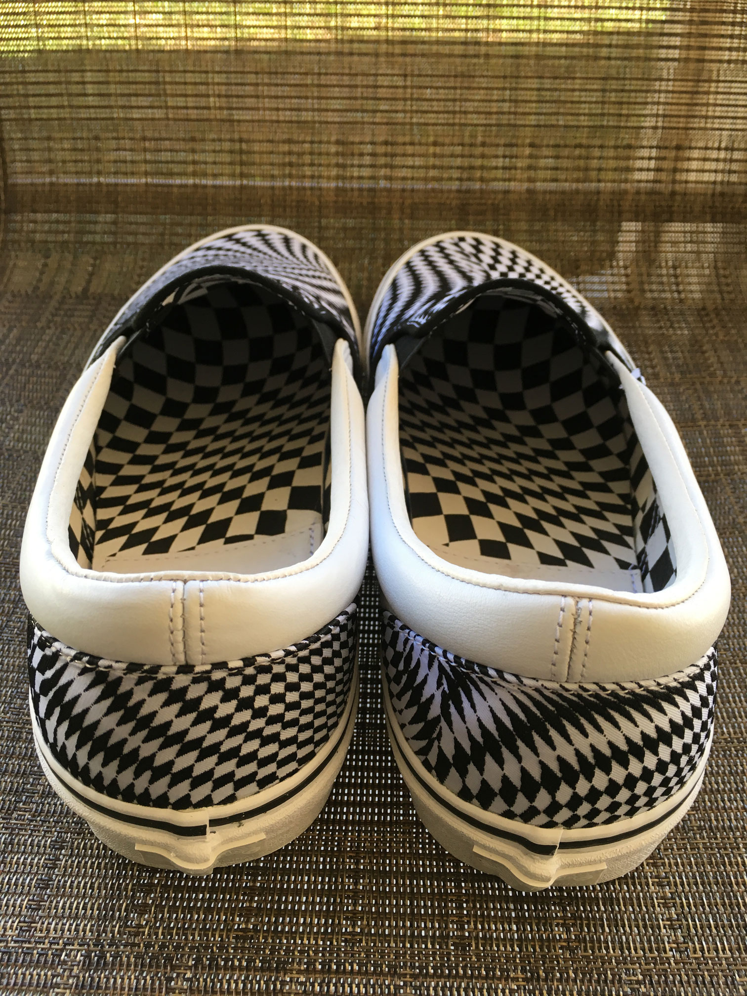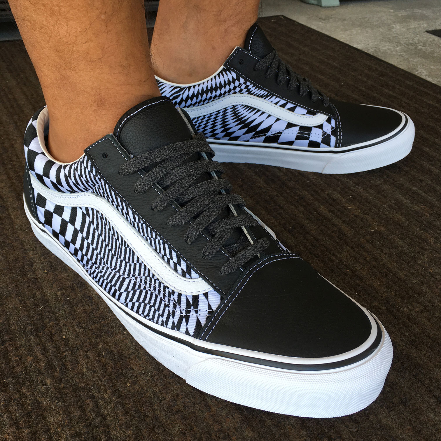 END. is set to release their latest project with Vault By Vans, an OG Classic Slip-On LX & OG Old Skool LX, and we wanted to give you a little bit of a P/Review of what to expect.  First of all, I want to thank END for the early plug on these, and for just allowing a Vans collector like myself, to have a little bit of an edge over the steep competition out there.  With Vans’ current hype, many of you Vans vets know the struggle!  But anyways, this is another banger to come out of the UK, and it’s no surprise that there is this more refined aesthetic that we seem to get from the Vault By Vans collaborations coming out of Europe.  END took the most iconic Vans shoe, the black and white checkerboard Slip-On, and literally put a twist on it.  We’ve seen the checkerboard done in so many color combos and materials, but this is the first time we’ve actually seen it morphed and twisted in this unique pattern.  To top it off, the pattern was woven, not printed, so each pair will have it’s own unique part of the fabric, so no two pairs should look the same.  Major props for that, alone!  It’s all about the execution, and the premium features don’t stop there.  We get premium full grain leather, complete with that soft slight wrinkling in it, that lets you know it’s good.  Pigskin linings are standard on your OG Vaults now days, but it’s still nice to mention.  The inner lining of the Slip-On is all checkerboard as well, with the footbeds carrying the same Vertigo pattern, and END branding on the heel pad.  The vulc soles are a natural white color.  I can’t forget to mention the super cool checkerboard Vans flag on the sides.  The Old Skool comes with 3 pairs of laces, which I opted for the grey wool-like ones.  Each pair will come in a larger over-sized custom velveteen wrapped box, the same one used for last year’s END collab, but this one is wrapped in the Vertigo themed checkerboard print.  What a nice finishing touch, to an already amazing pack.