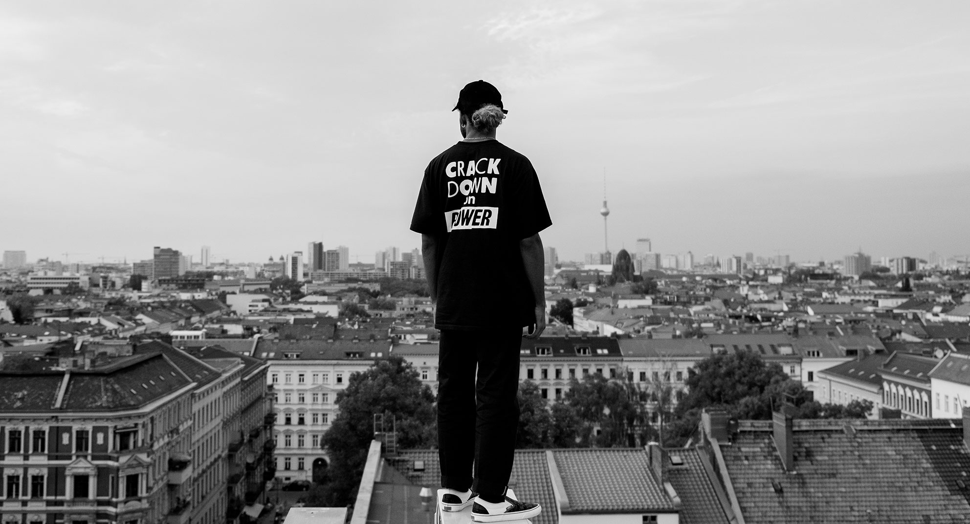 The collaboration affirms the subjective nature of how we digest information through the daily use of internet, TV and social media. Stark graphics, tabloid headlines and a ‘Crack Down On Power’ hit foresee the one and two-way communication in which we engage subconsciously.