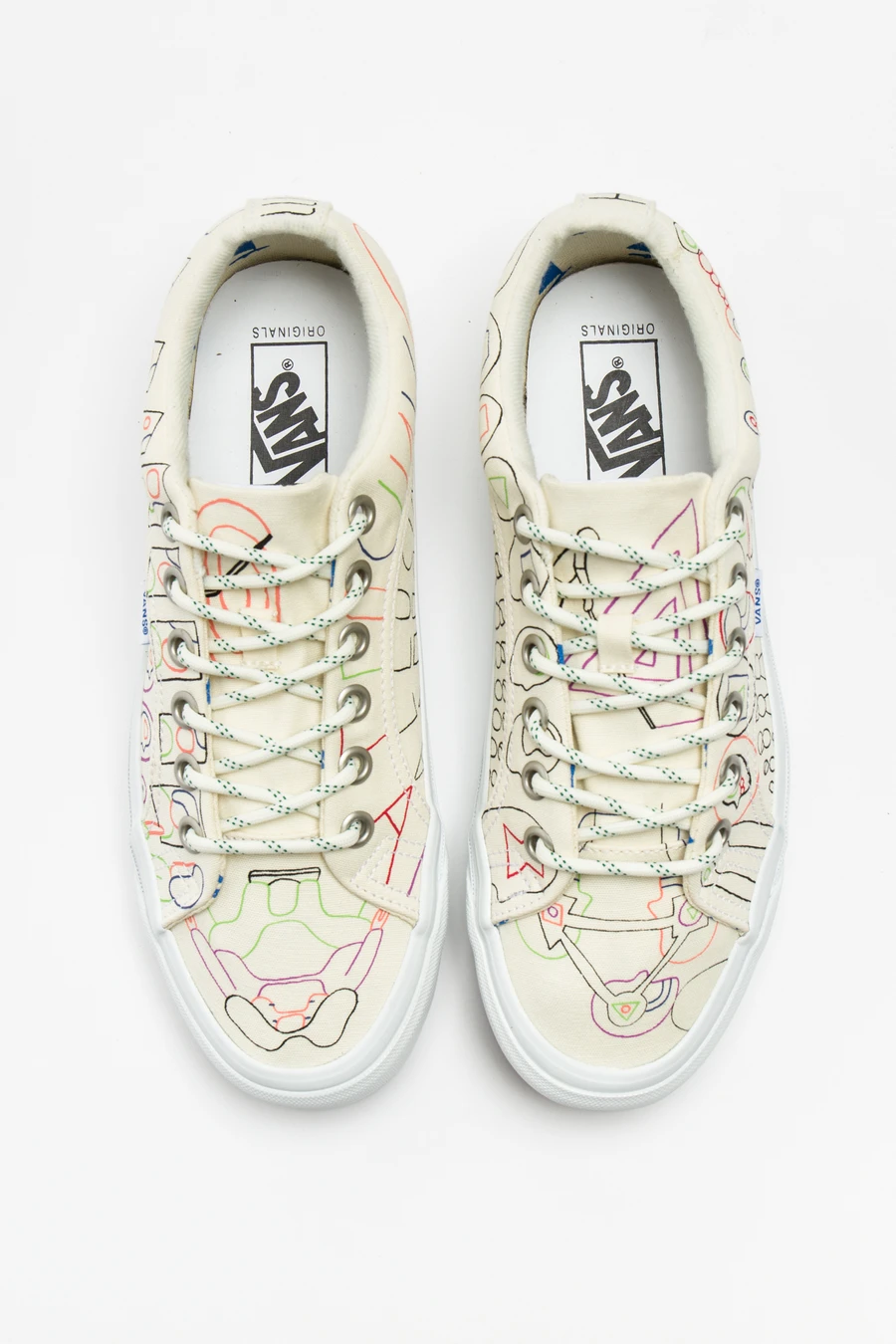 After years of working together on special projects and small custom collections, Vans Vault and Geoff McFetridge present a collection of sneakers, apparel, and accessories adorned with custom graphics and patterns in McFetridge’s signature refined, colorful style.