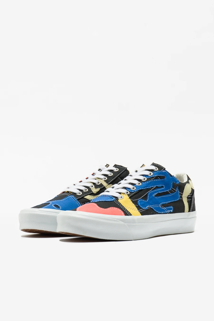 The collection consists of 4 models: an OG Authentic LX in Gamelan, an OG Lampin LX in Hallucinaut, an OG Old Skool LX in Ollie Patch, and an OG Classic Slip-On LX in Transcentcoastal. Lots of colors. Lots of contrasting material and panels sewn on to each shoe. This pack is pretty unique.