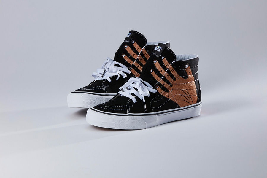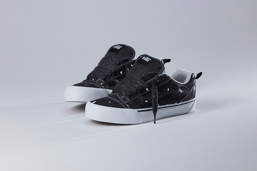 The collaborative collection features the return of the Vans KNU SKOOL. The skate shoe first released in the late ’90s and featured a puffy, oversized design, as did many skate shoes of the era. The KNU SKOOL was re-released in 2015 exclusively via Vans Japan, making this release the first global re-introduction to the silhouette.