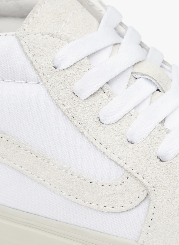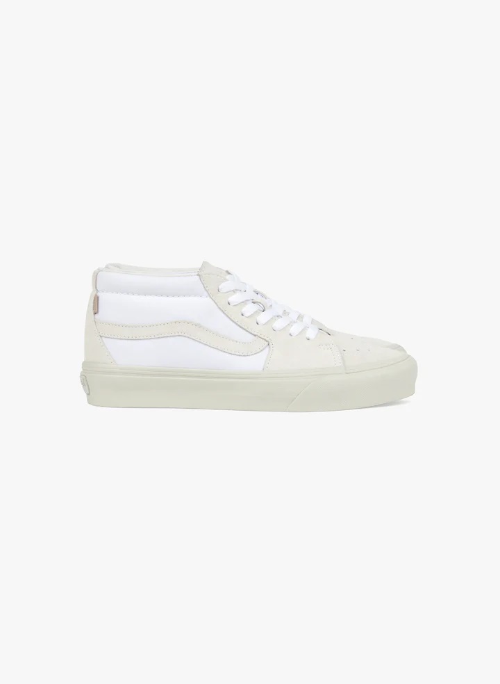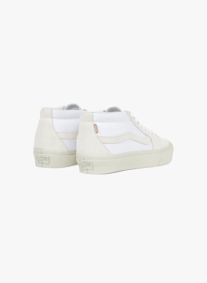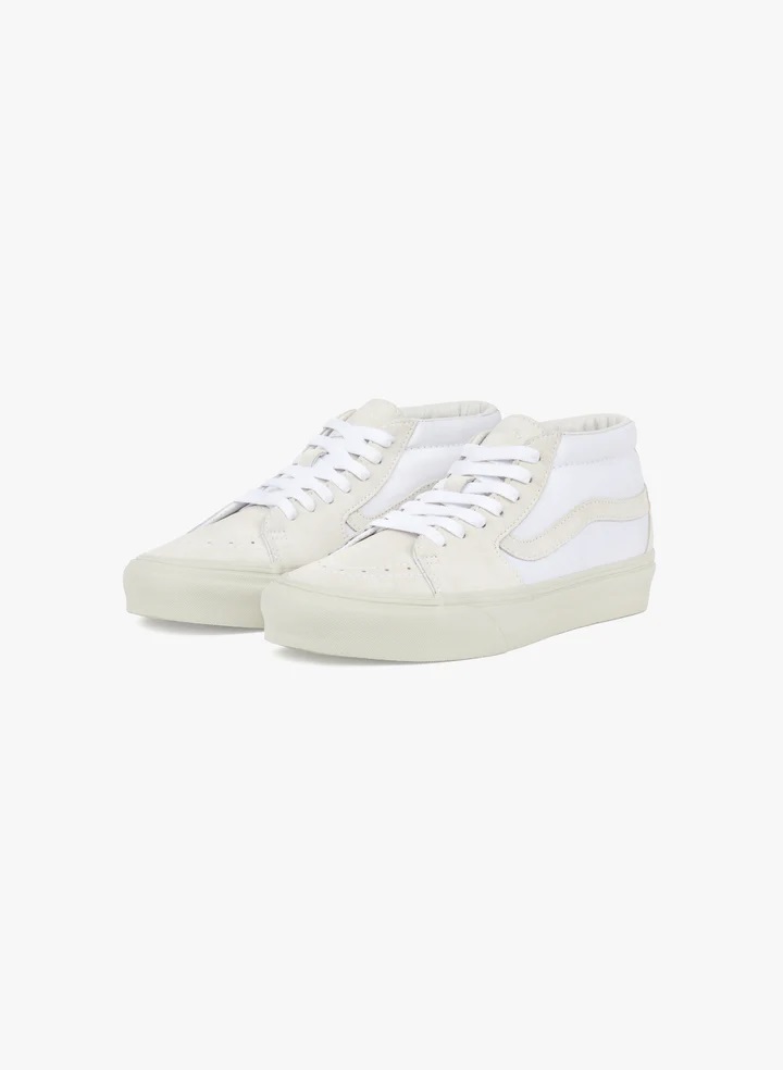 Debuting in the ‘90s as Vans Style #83, the Sk8-Mid evolved from the beloved Sk8-Hi and eventually became a favorite among skaters. JJJJound reinterpreted the mid-top to incorporate a fine organic cotton and suede upper build.