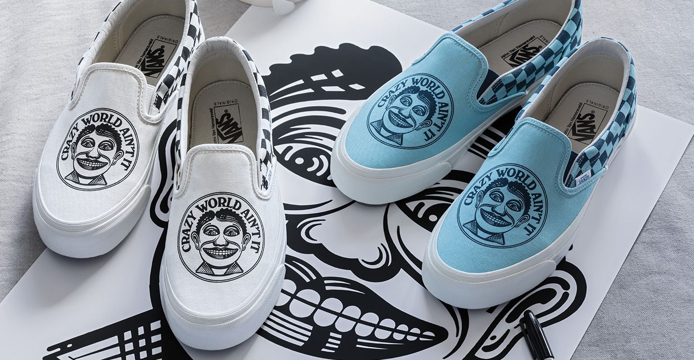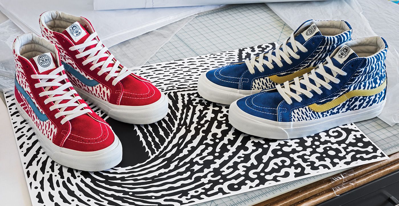 In this collection, Vans introduces new iterations of the OG Sk8-Hi LX and OG Classic Slip-On LX featuring Hamersveld’s designs in bold, retro colors and an apparel component that incorporates the iconic JVH designs on a classic black tee. And in a true showcase of heritage design, Vans presents three skate decks that match back to each design to round out the collection.
