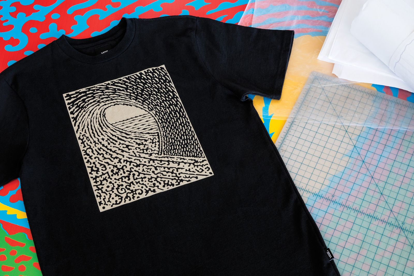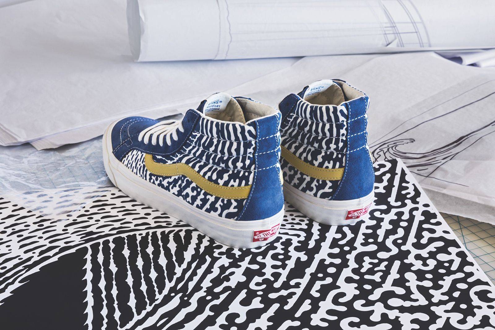 “Vault by Vans partners with renowned artist and graphic designer, John Van Hamersveld to create a curated collection of nostalgic designs, including his iconic Wave print. Featuring his storied works on Vans’ OG Classic footwear models, apparel silhouettes and skate decks, this eclectic assortment fits in with the ranks of iconic Vault by Vans collaborations.