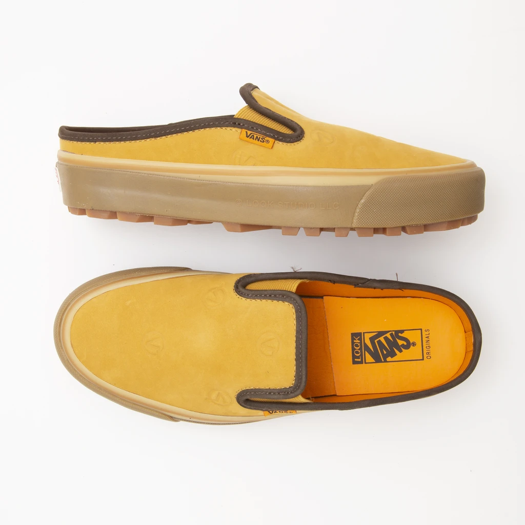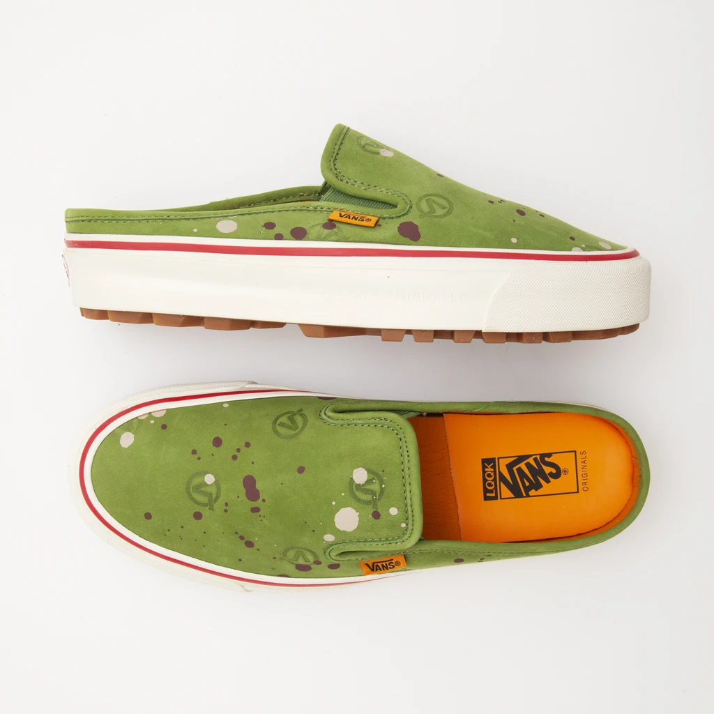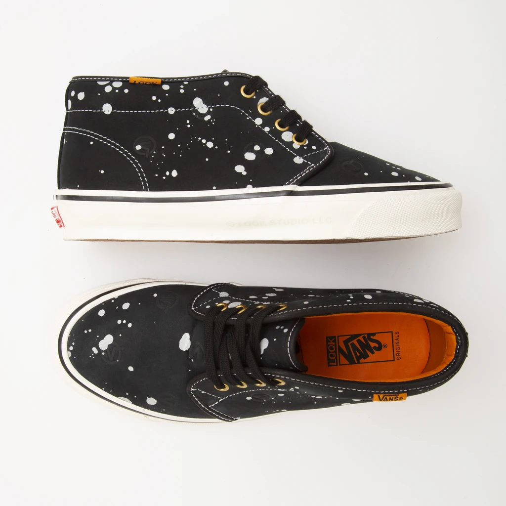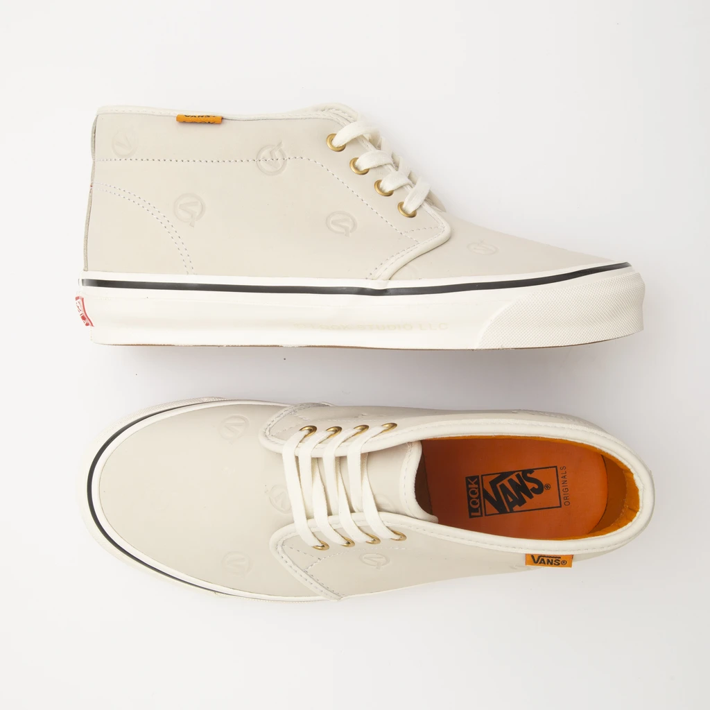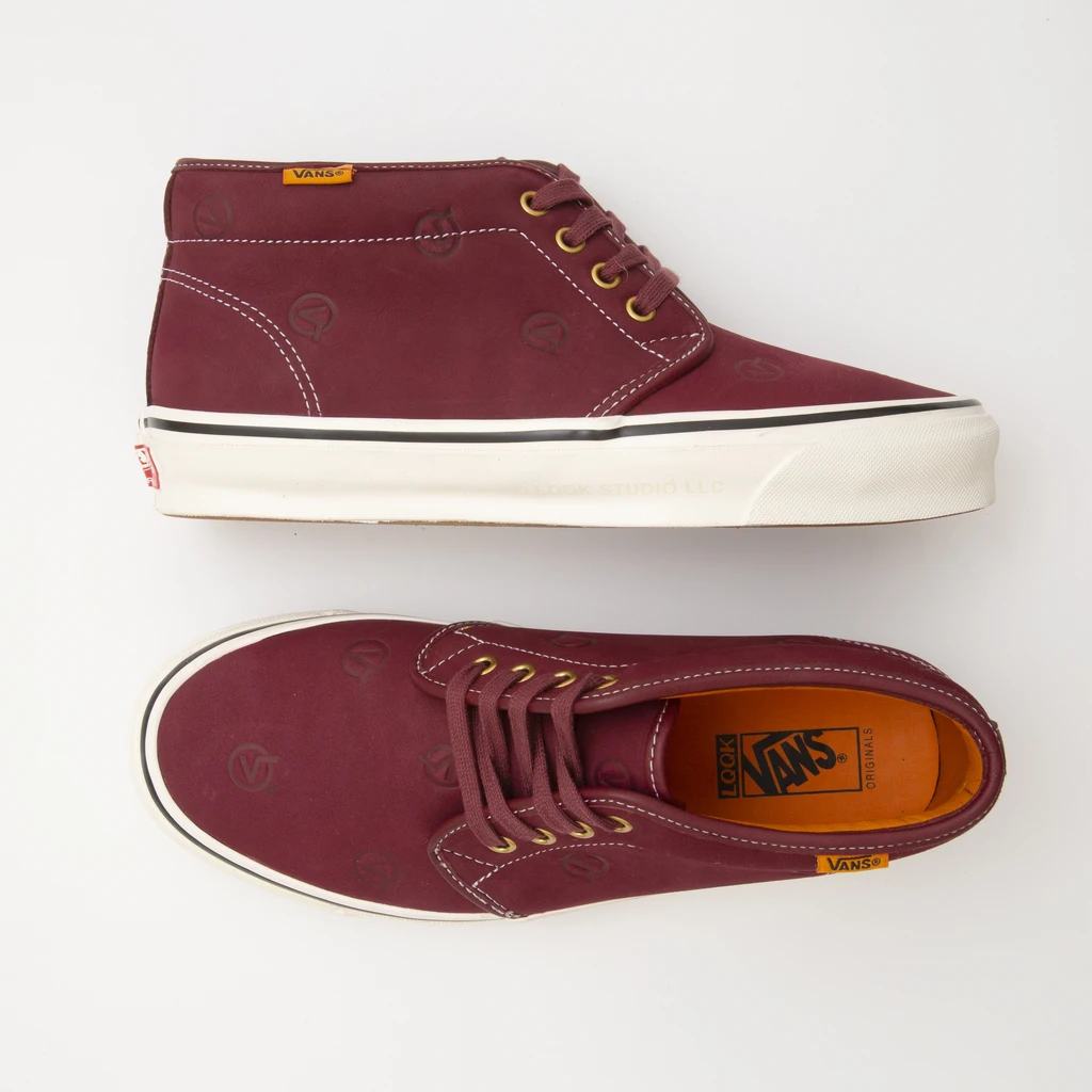 This Holiday 2020 season, Vault by Vans x LQQK Studio release a six-shoe capsule, all of which feature the Circle V theme that resonated with fans so strongly in 2018. The collection is led by the OG Style 17 Mule LX in honeycomb and the OG Chukka LX in burgundy, both of which give a nod to the workwear resurgence in both color and materials. The OG Style 17 Mule LX and OG Chukka LX also come in splatter ink executions, as well as a natural colorway.