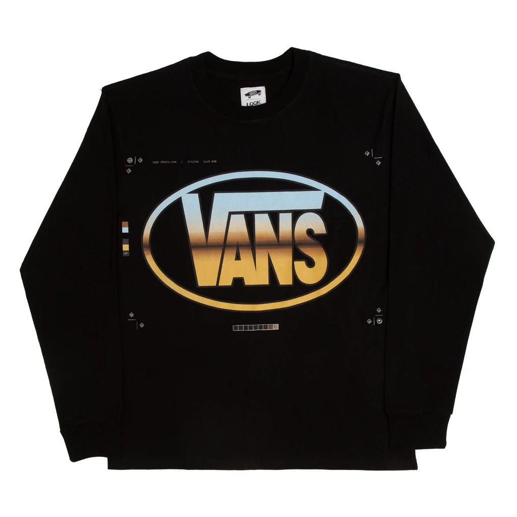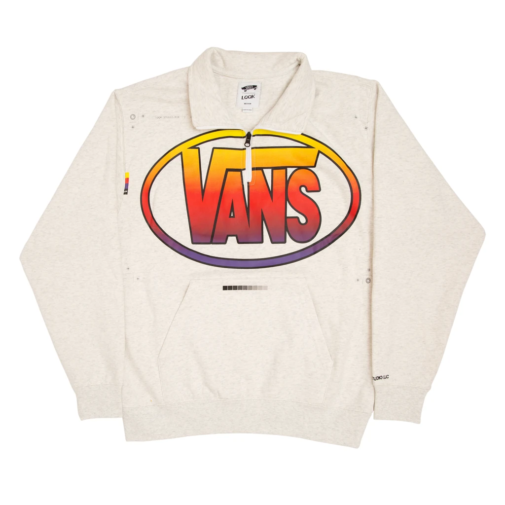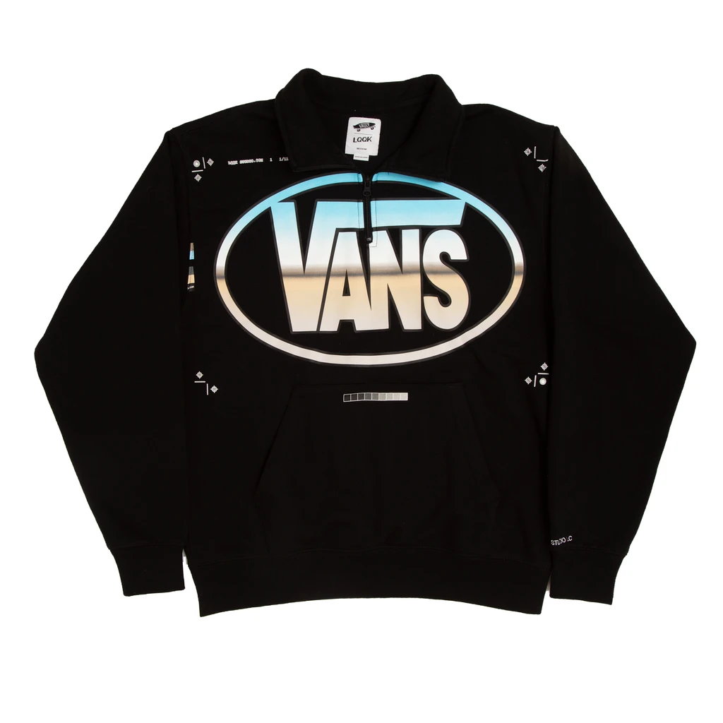 The Vault by Vans x LQQK Studio collaboration will also include three pieces of apparel: a quarter-zip sweater, sweatpants, and a long sleeve shirt with an oversized, gradient Vans logo. The quarter-zip and sweatpants are available in black and ash heather, while the long sleeve shirt is available in black and bright orange”.