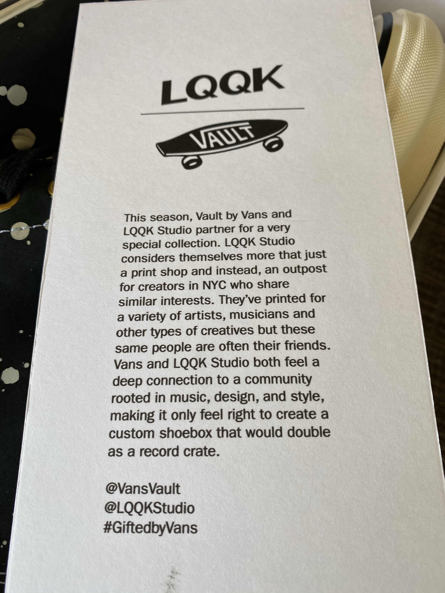 I received a nice package the other day from our friends over at Vans, and to my surprise it was a pair of OG Chukka Boot LX’s from the Vault x LQQK collection, accompanied by a super dope custom made vinyl crate, showcasing some printed graphics featured in this collection. They know me so well! Before I get into reviewing this pair, I wanted to say thank you to Michelle C. over at Vans, who always thinks of me, and keeps me tapped in to the latest and greatest things happening over at Vans. There’s many more friends we have over there, but she’s special special lol. Thank you Michelle!