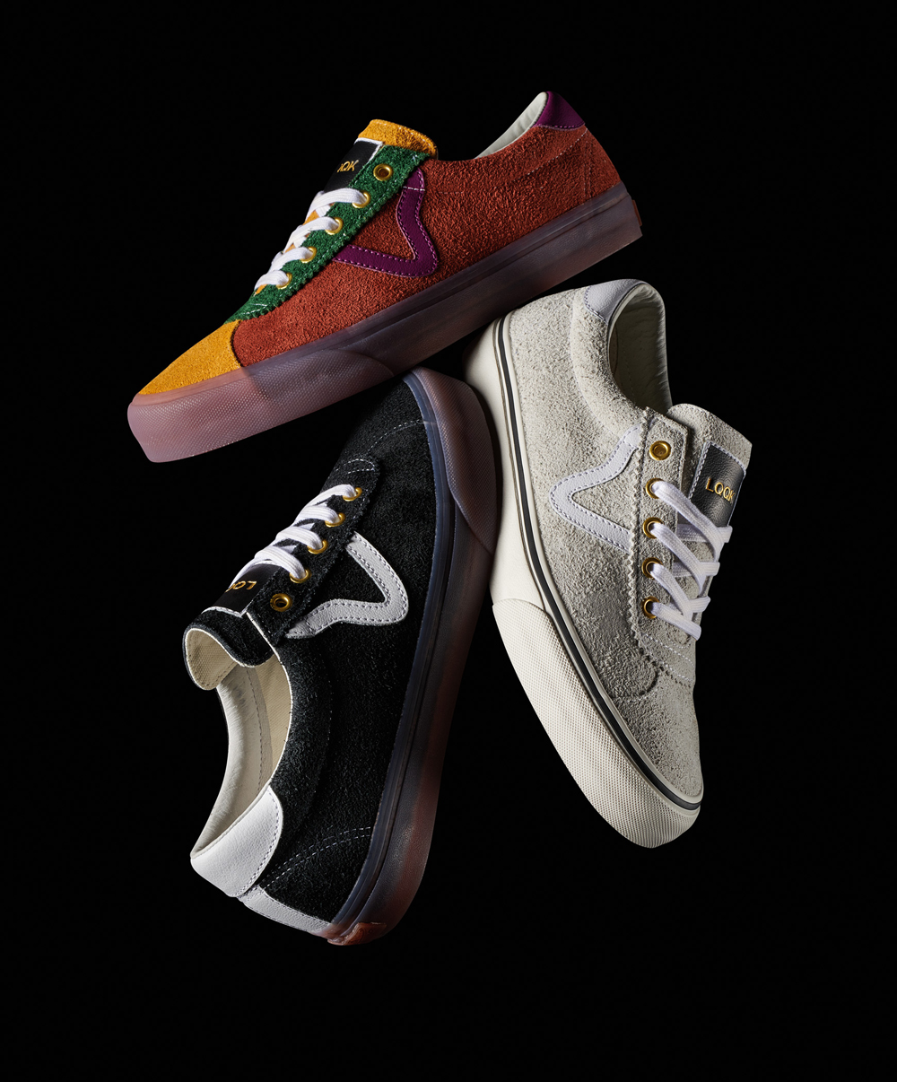 For this special collaboration, Vault by Vans designers and LQQK Studio dug through the Vans archives to reintroduce the Epoch Sport LX in three colorways including black, cream and multi-colored, all featured on a striking translucent gum outsole. The Authentic One-Piece LX in black, purple and cream hairy suede colorways showcases the rare yet iconic flying “V” logo on the quarter panel in a contrasting white embroidery. In apparel, Vault by Vans and LQQK Studio introduce two short-sleeved crew tees in an all-over checkerboard jacquard, a black polo shirt with monochromic sleeve detailing, black track shorts, two six-panel hats and a semi-opaque coaches jacket.