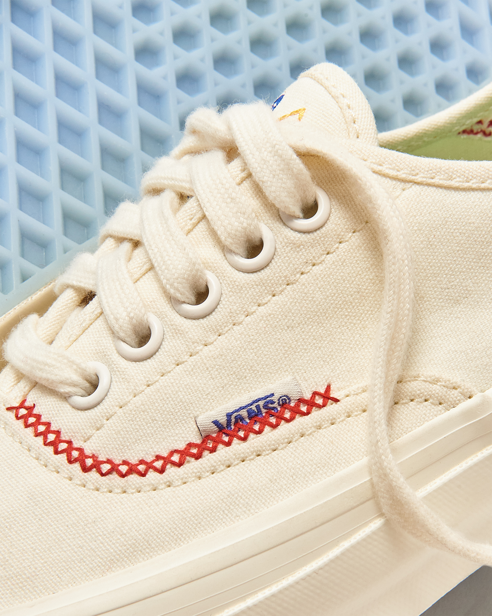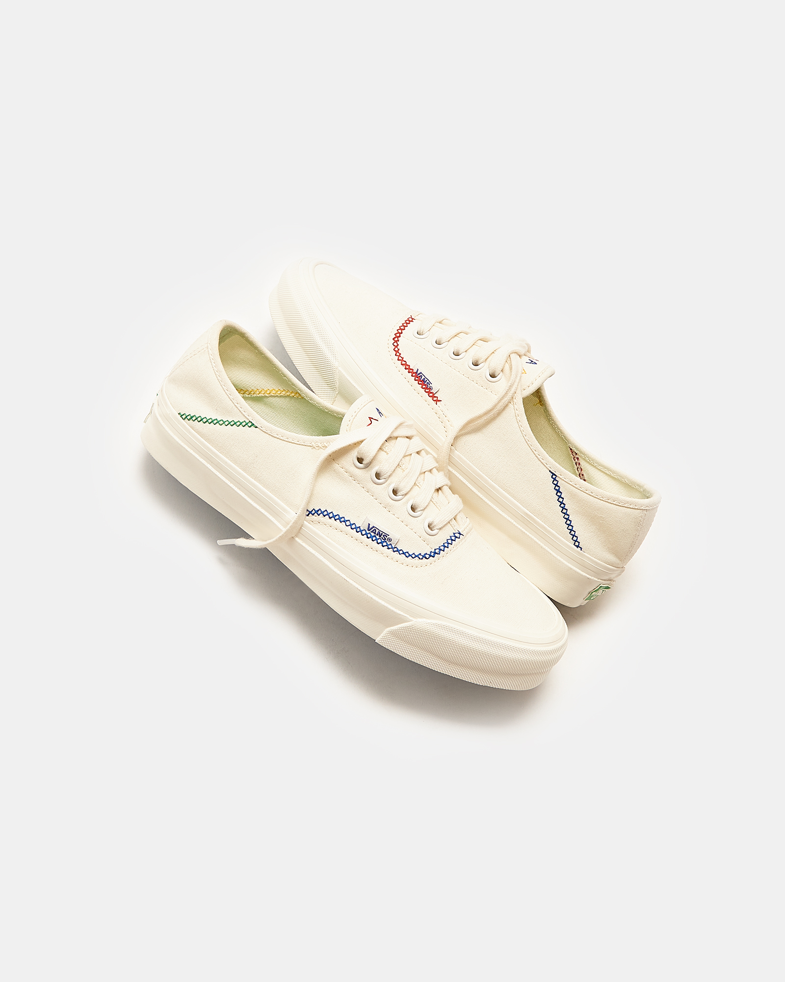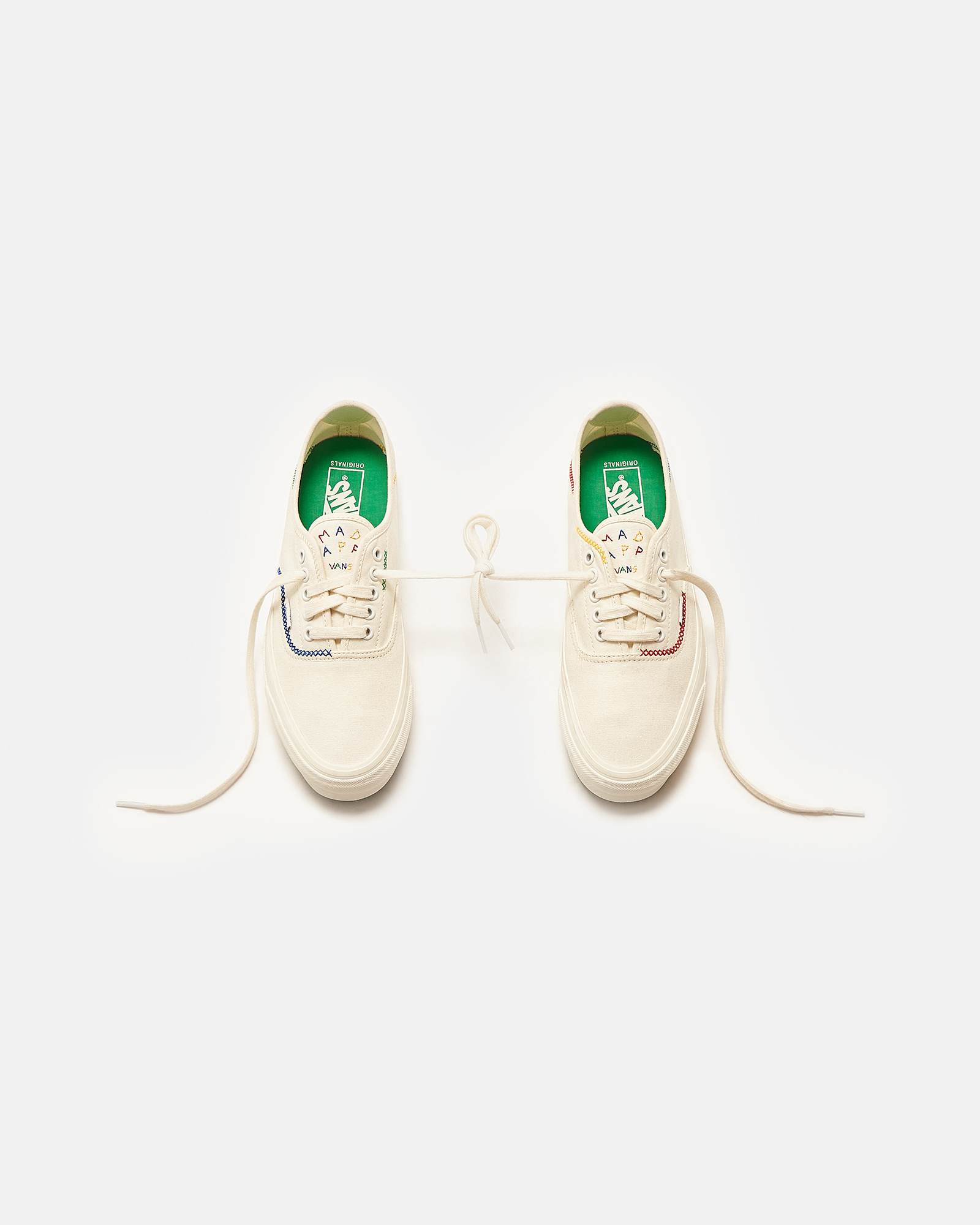 Reworking the OG Style 43 LX with primary color (red, yellow and blue) stitching, the like-minded brands have come together to create a sneaker that promotes community and camaraderie through customization. Taking inspiration from friendship bracelets, each pair comes with a set of beads (a mix of letters, colors and symbols) that allows the wearer to upgrade their Madhappy Vans with an individual message or daily reminder of positivity. The shoes are finished with an ice blue sole – a Vans rarity – and a unique heel that folds down into a slide to maximize comfort.