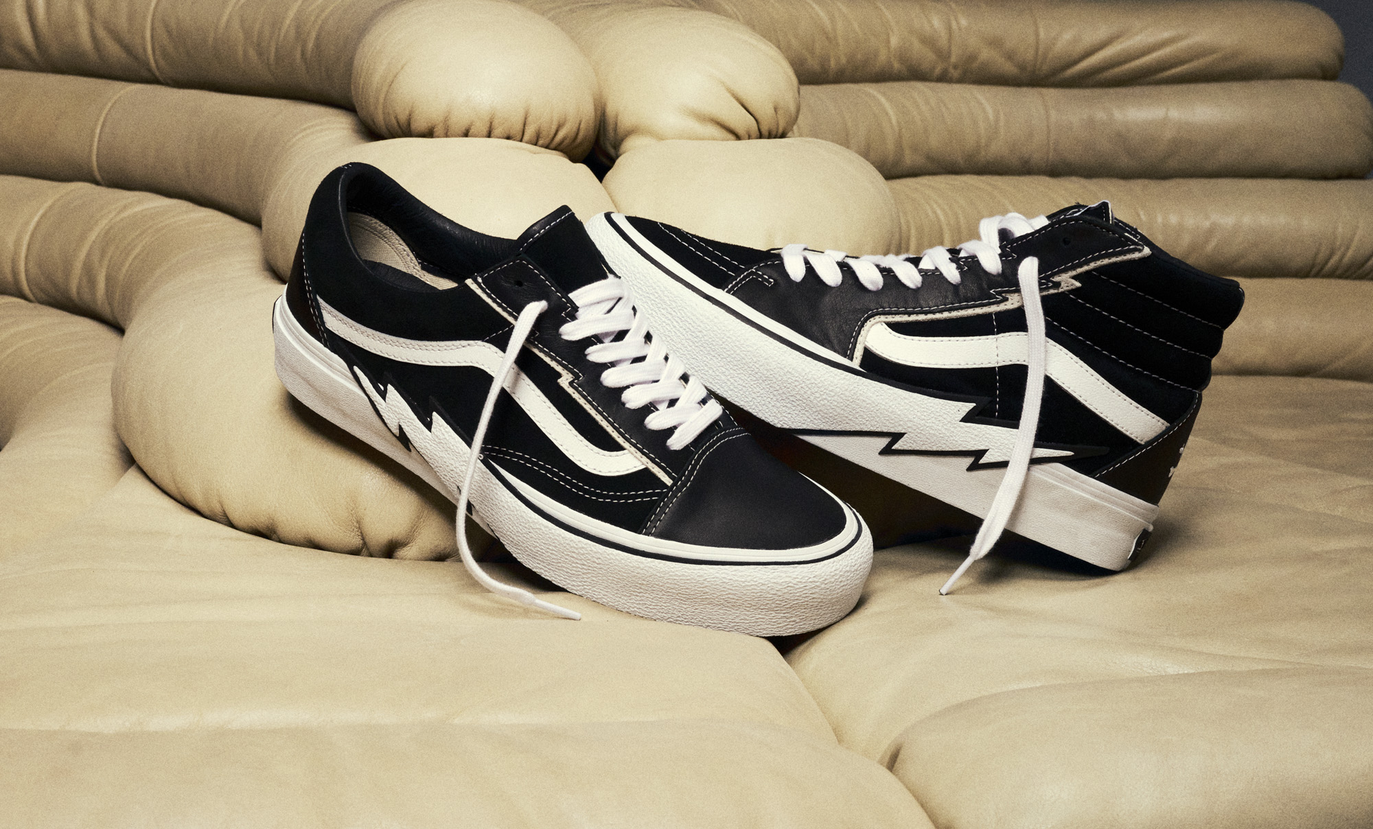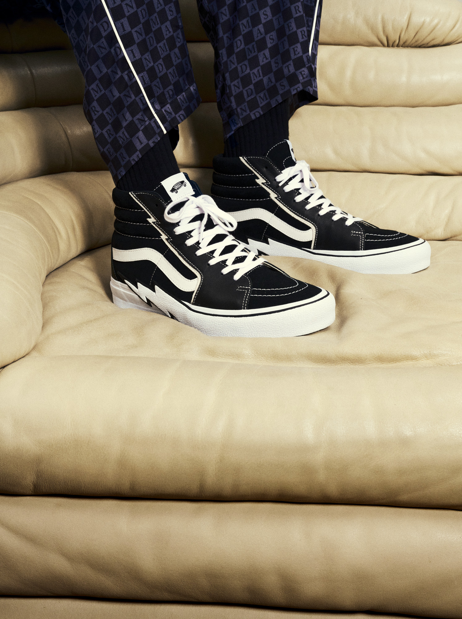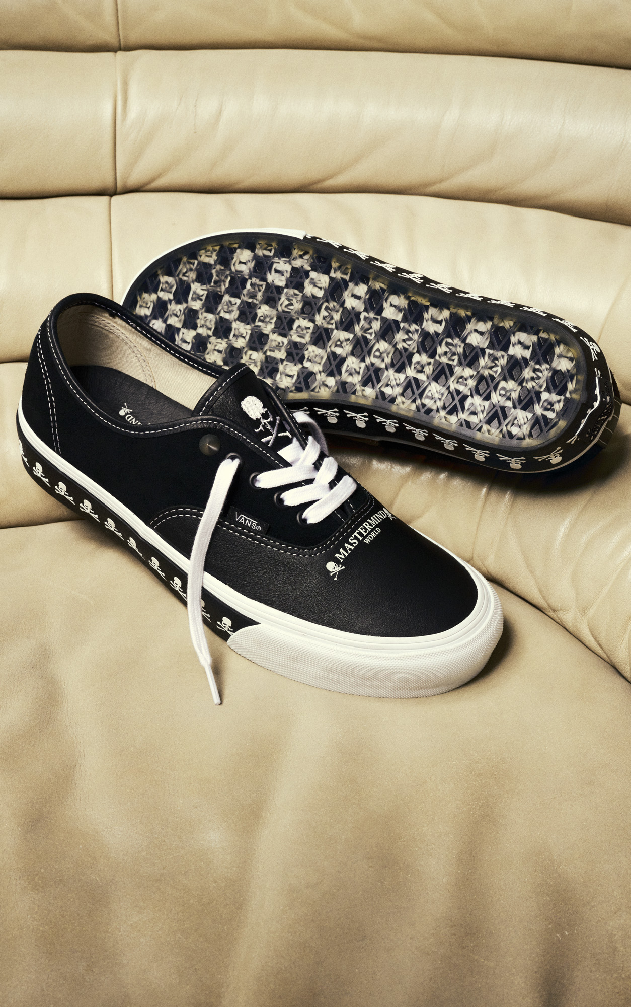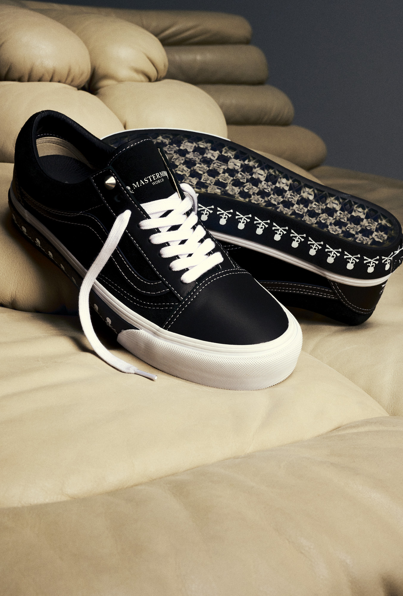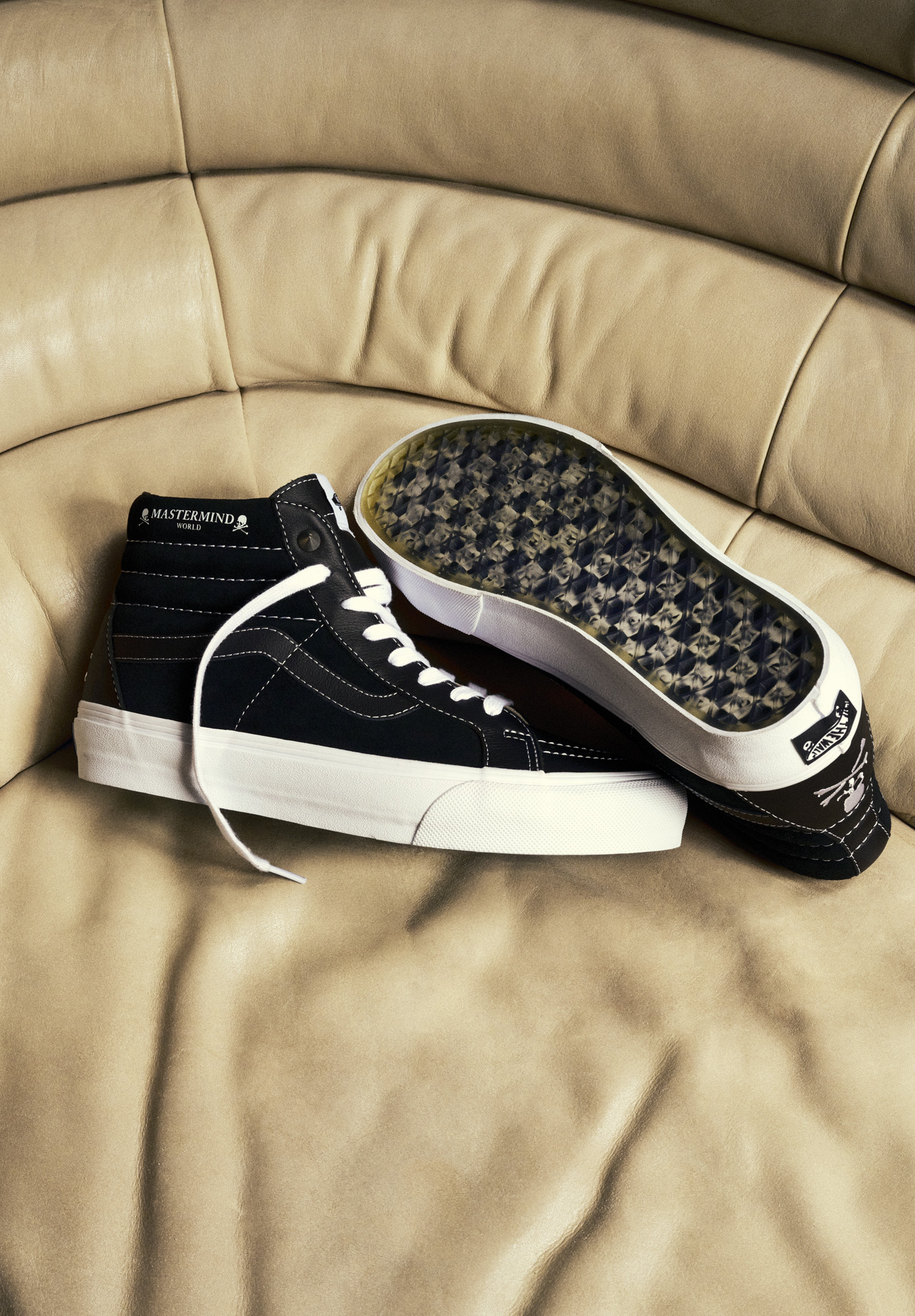 Founded in Japan in 1997 by Masaaki Homma, MASTERMIND WORLD is an eclectic mix of sport, street, and elegance, distinguished by cutting-edge luxury fabrics. The Vault by Vans x MASTERMIND WORLD collection fuses a minimalist punk aesthetic that leads with Vault by Vans Sk8-Hi Bolt VLT LX and Old Skool Bolt VLT LX in black/white colorways, crafted from Italian leather and accompanied by ultra-soft premium suede quarter panels and custom Mastermind detailing on the heel counter.