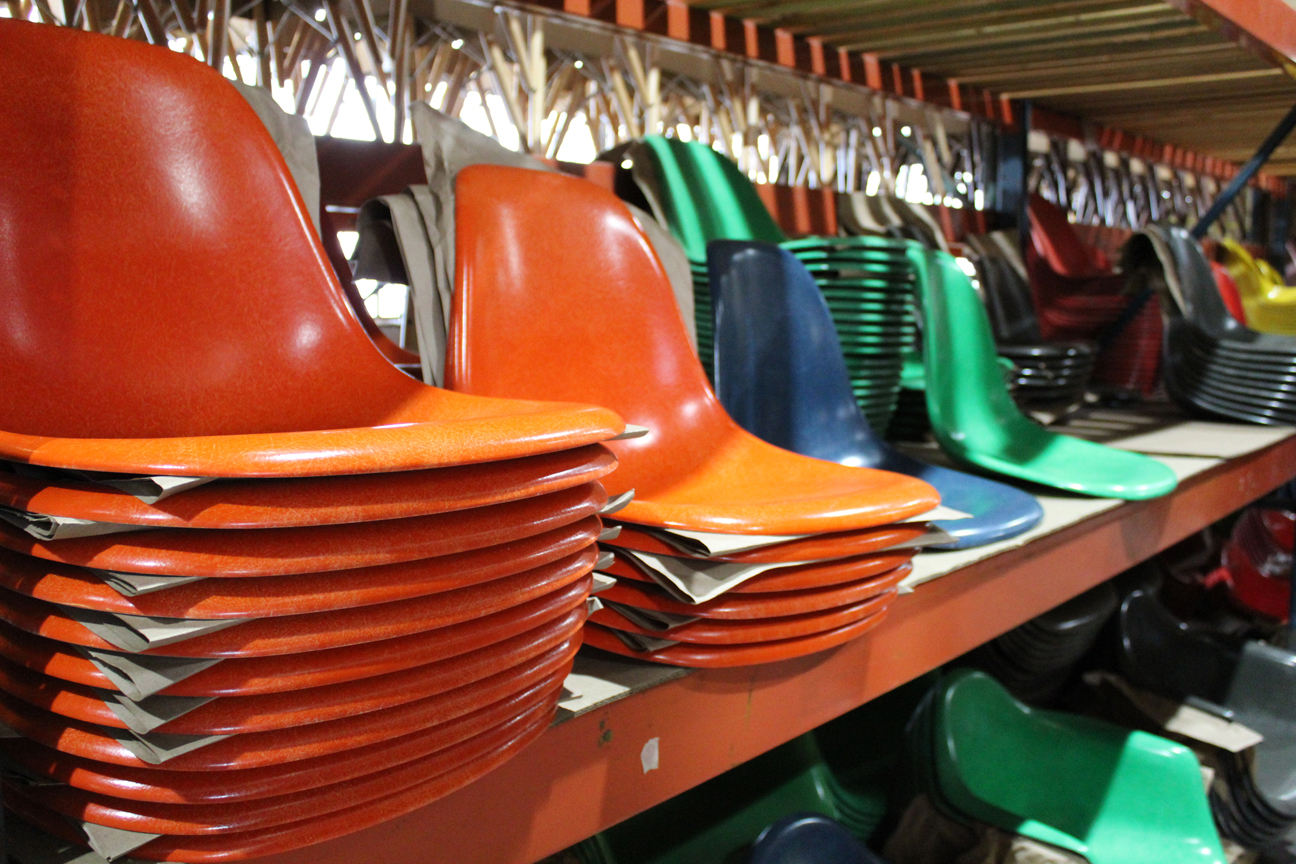 “This chair is easily one of the most important and recognizable designs of the twentieth century.  They were originally designed in 1948, as an entry in The Museum of Modern Art’s International Design Competition, and it should be noted that Modernica is responsible for revitalizing the almost lost art of high-pressure fiberglass molding. The factory is home to the historic fiberglass presses and specialized machinery that has been used in the production of thousands of chairs for over three generation. Since 1999, Modernica has steadfastly produced the chairs as they were originally created, preserving fiberglass chair legacy and craft.  In 2000, Modernica revived this potentially lost art of high-pressure, molded fiberglass. Modernica creates each shell, by hand, one-by-one, in their Los Angeles factory—just as they had been designed, developed, and produced in Southern California in the 1950s. Modernica uses all of the original presses and specialized equipment obtained from Century Plastics. To ensure authenticity of production, the initial shell chair production was overseen by Sol Fingerhut and Irv Green, the same team employed over sixty years ago to develop the original technology. Modernica creates each chair with the charge of adhering to the original tactile qualities, texture, and characteristics that alone are unique to the fiberglass shell chair. Their historic equipment has created thousands of chairs for three generations of chair lovers — and everyday Modernica continues to produce beautiful chairs for upcoming generations.”