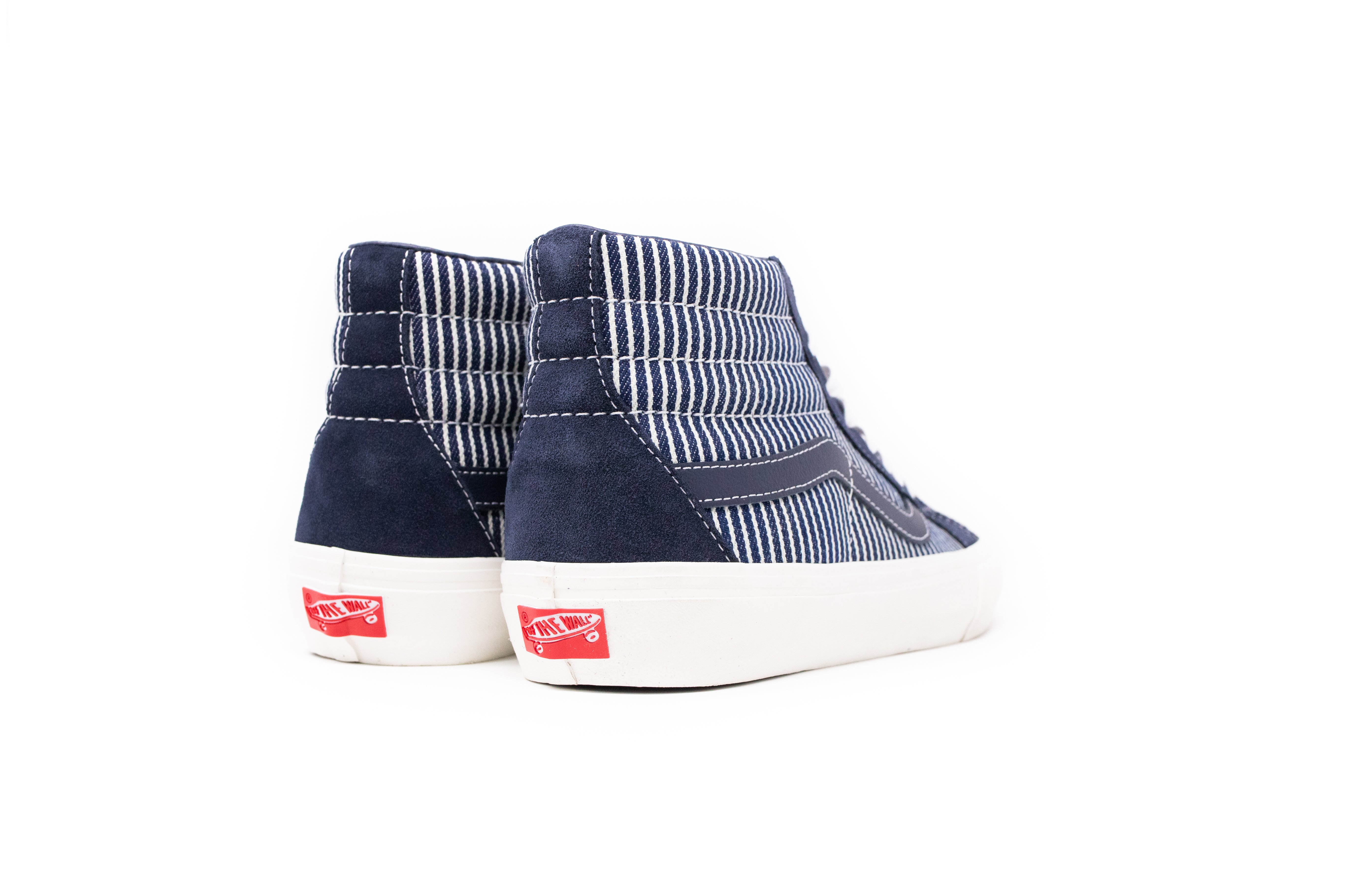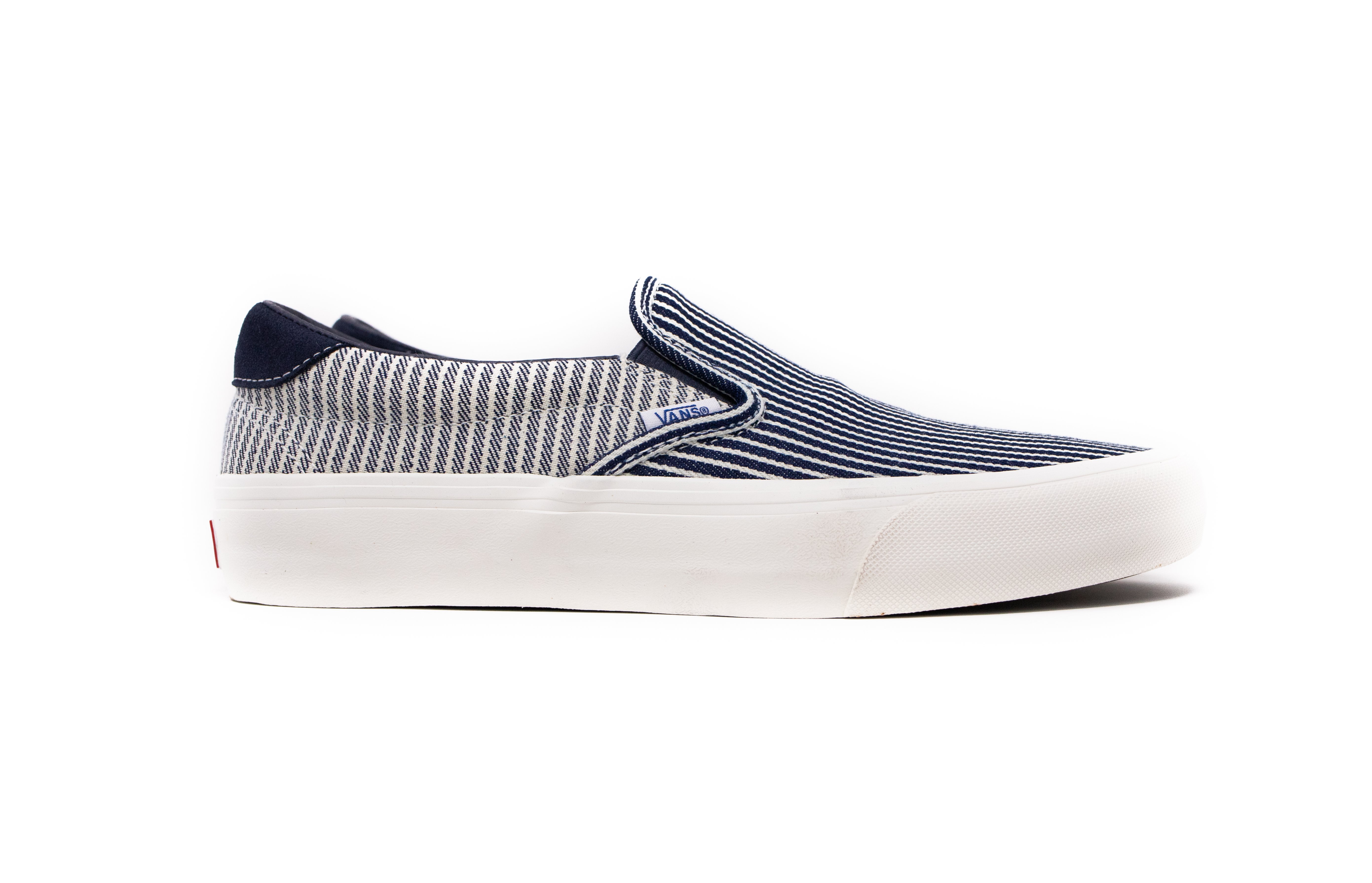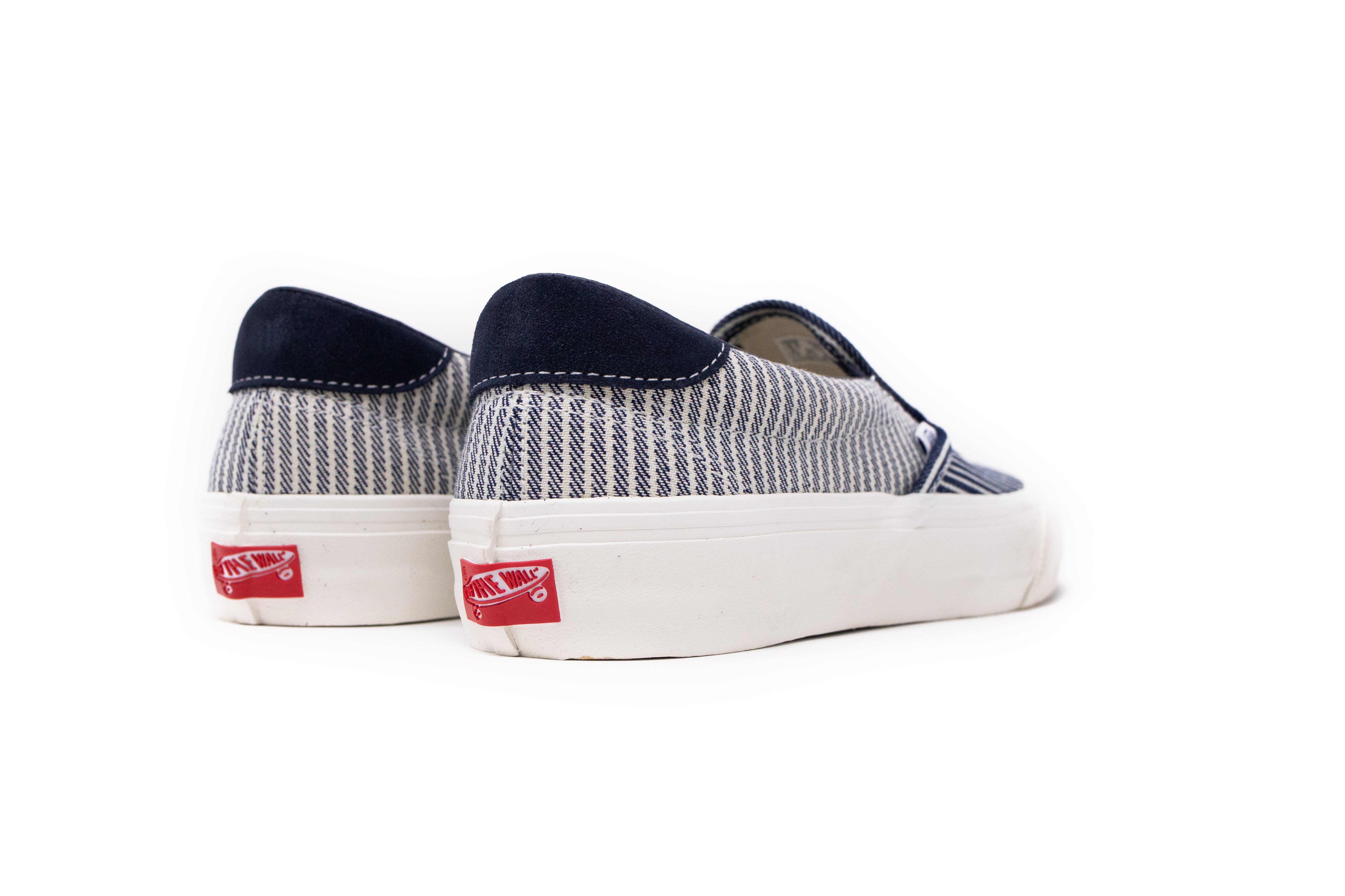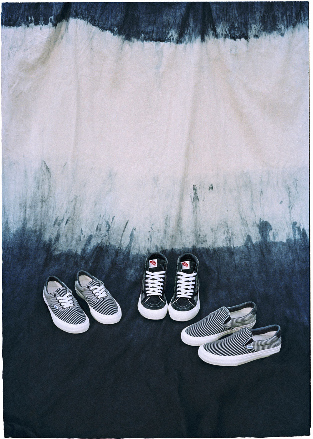 Complimenting the Drill Chore Coat in Hickory Stripe, Vans introduces the Provision Utility Pant, tote bag and striped jockey hat all in matching denim. In addition to the limited-edition apparel and accessories, Vans’ classic icons – the Era, Sk8-Hi and Classic Slip-On – are dressed and assembled with custom the Mount Vernon Mills fabrication”.