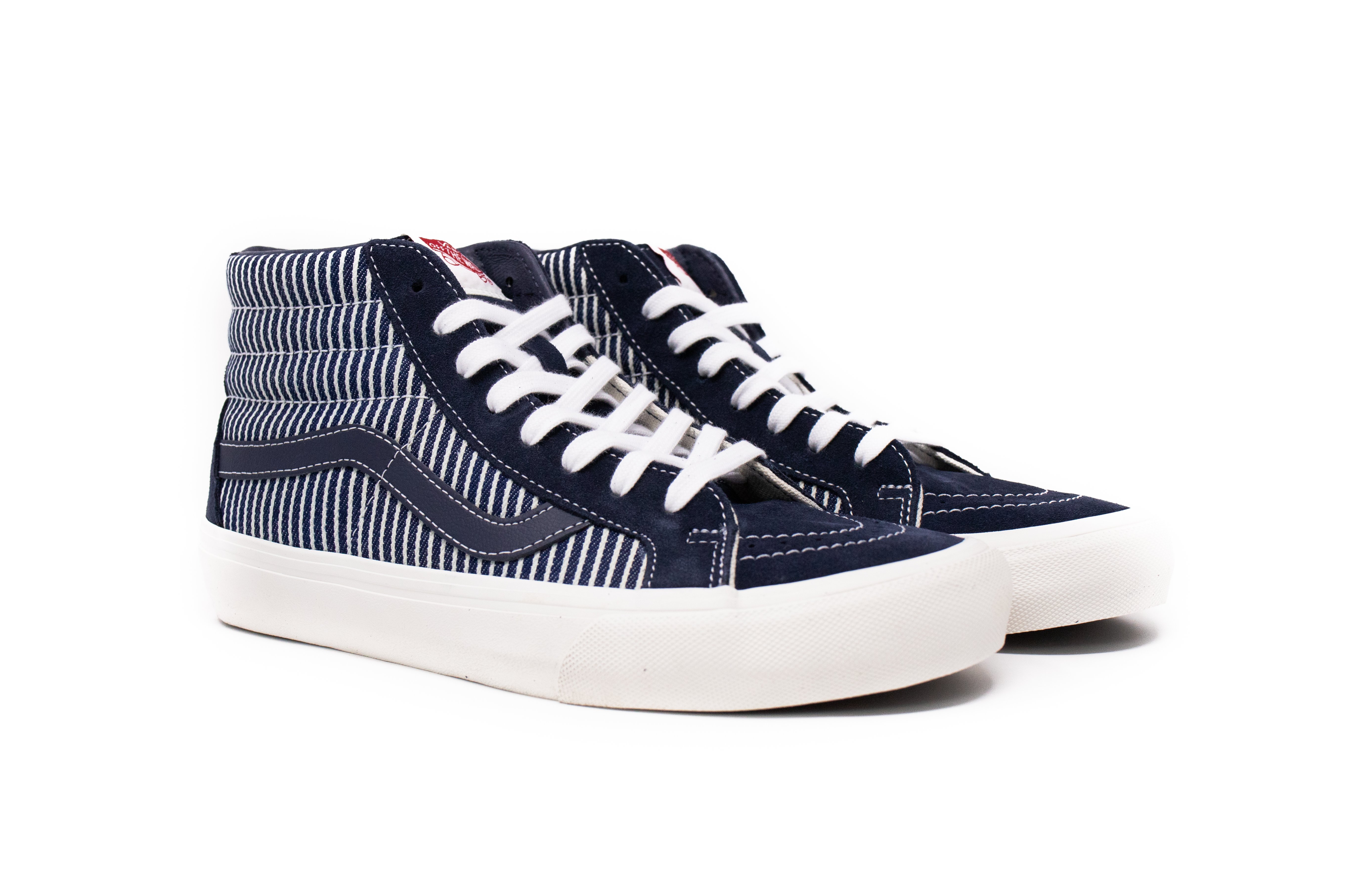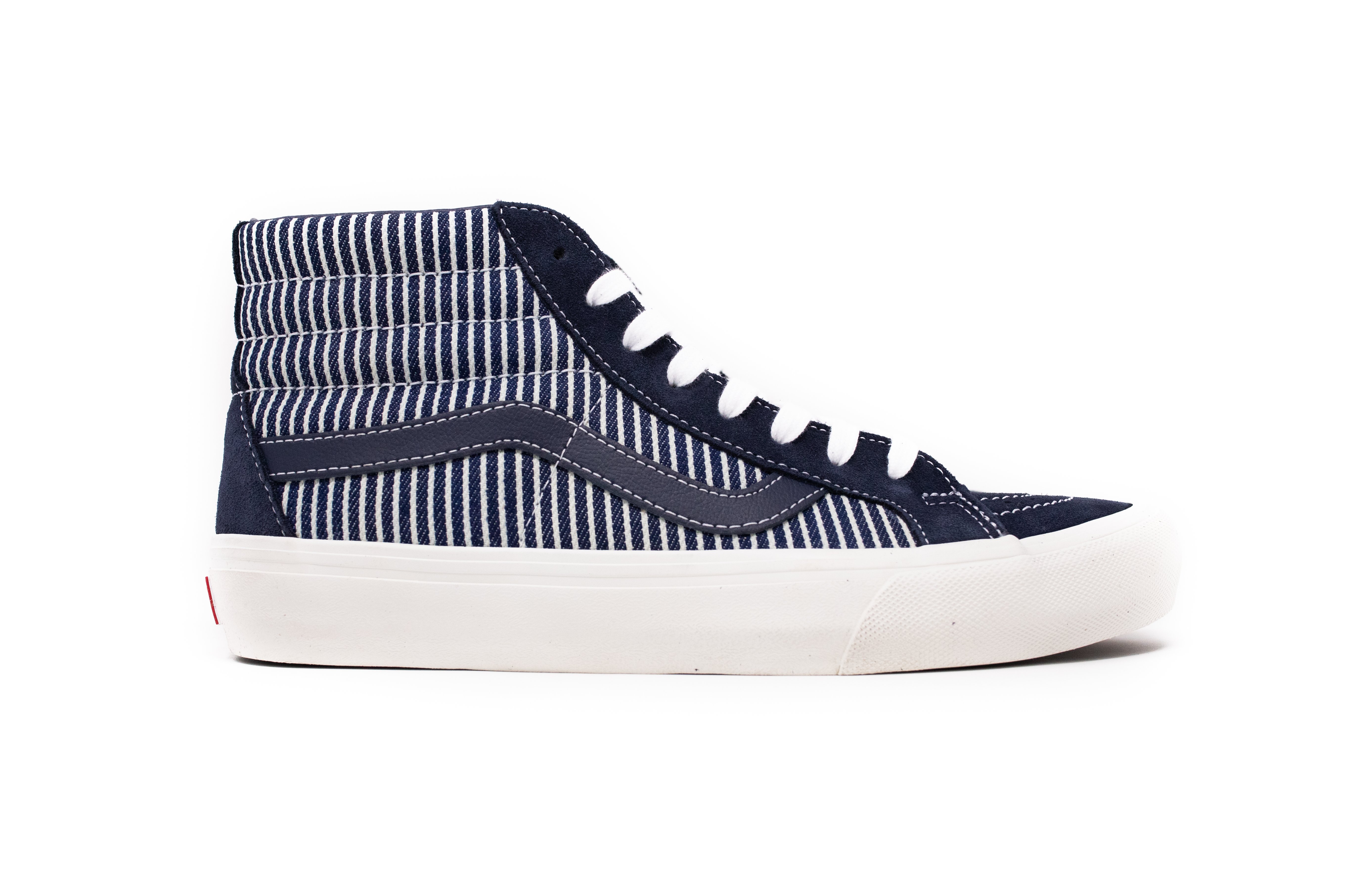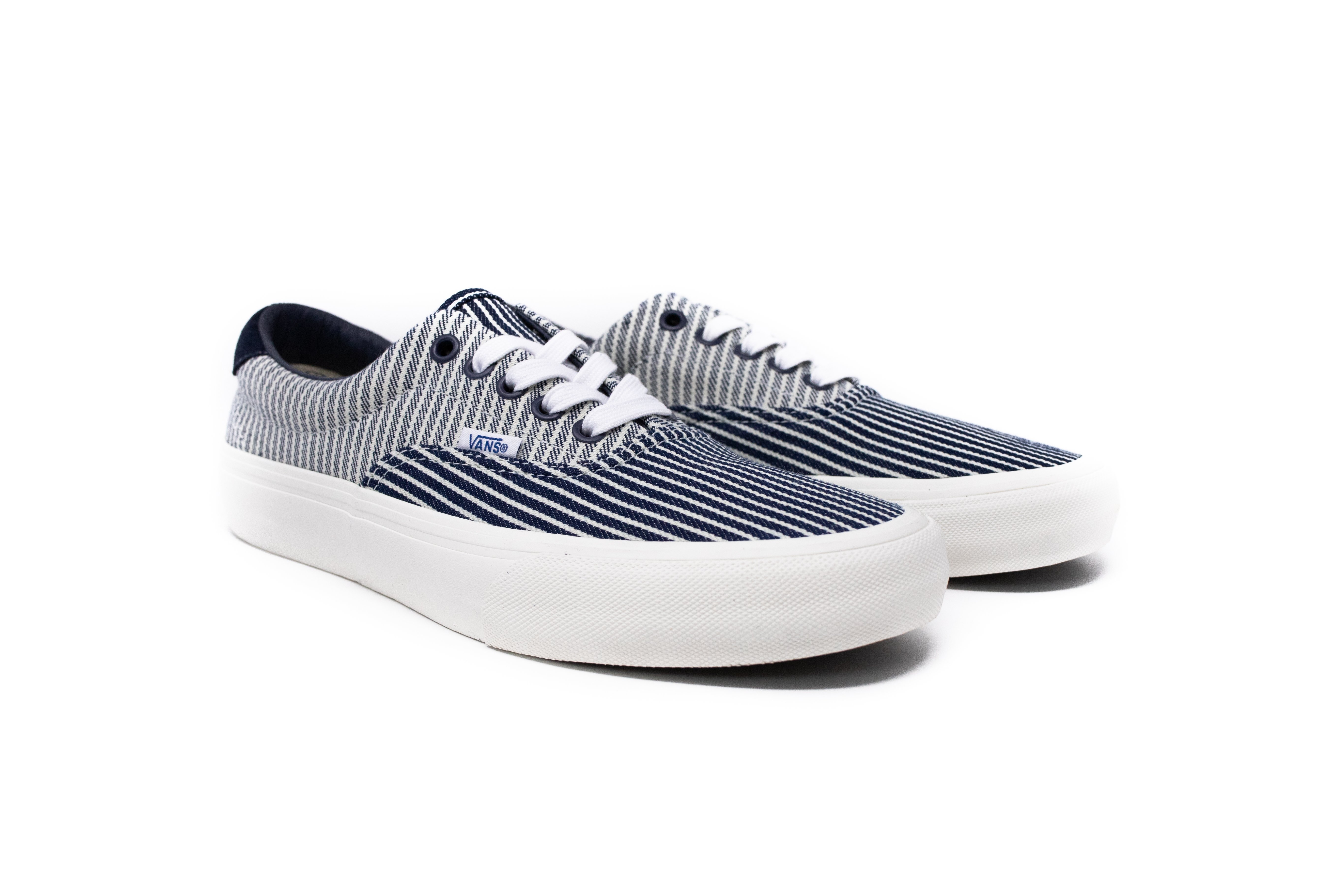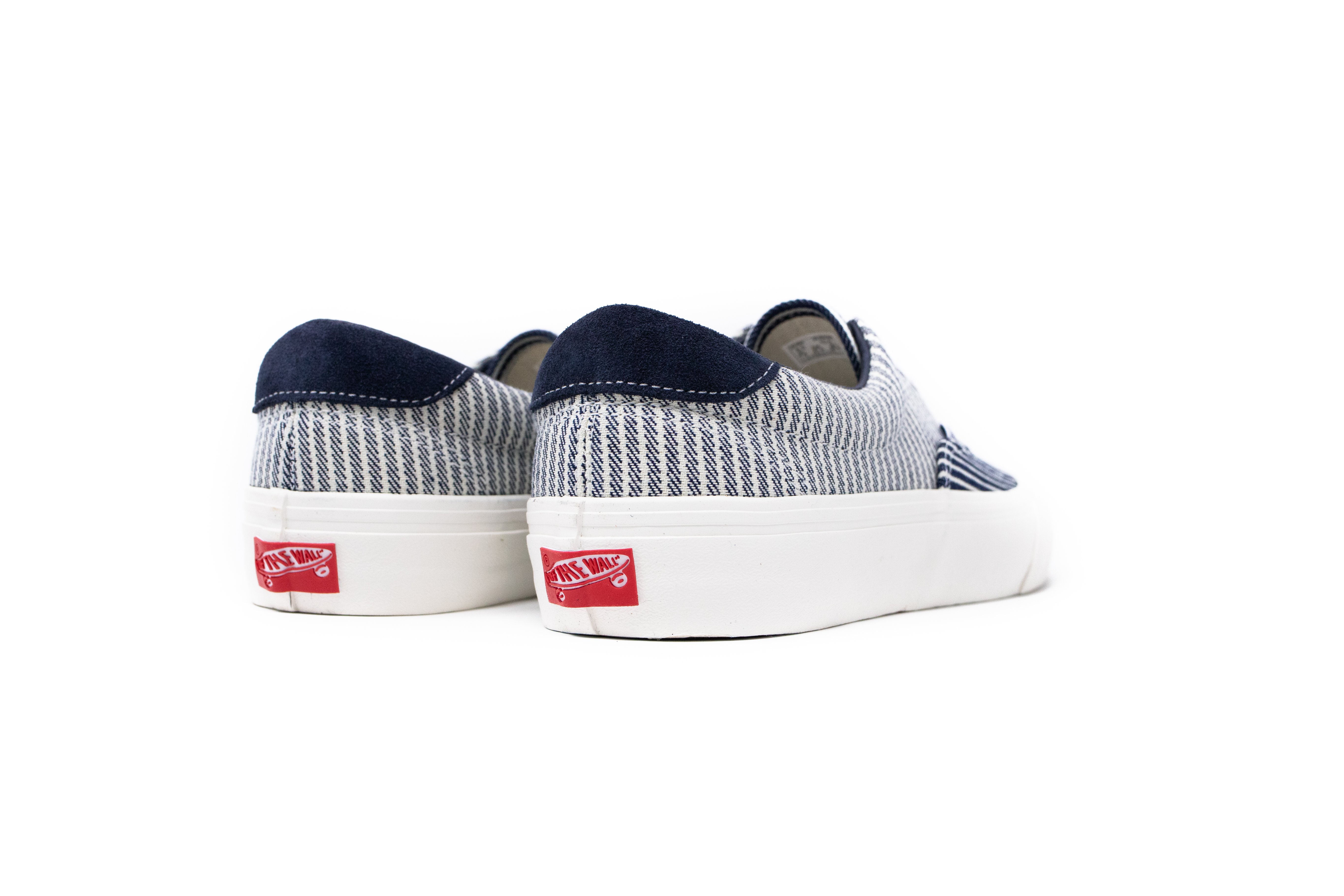 Complimenting the Drill Chore Coat in Hickory Stripe, Vans introduces the Provision Utility Pant, tote bag and striped jockey hat all in matching denim. In addition to the limited-edition apparel and accessories, Vans’ classic icons – the Era, Sk8-Hi and Classic Slip-On – are dressed and assembled with custom the Mount Vernon Mills fabrication”.