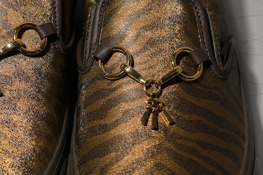 Set in colorways of bronze, white and black, the shoes feature zebra and leopard prints on one foot each, for a subtle asymmetrical look. Each pair comes with contrasting metallic embellishments of loops and tassels that hang from the upper forefoot, mirroring the designs of traditional loafers. Tonal top-stitching has been given to all three pairs, seen on the sleek leather piping that run along the edges of their tongues. To round off the designs, the shoes get vulcanized midsoles, co-branded insoles and Vans’ classic waffled outsoles for added comfort and support”.