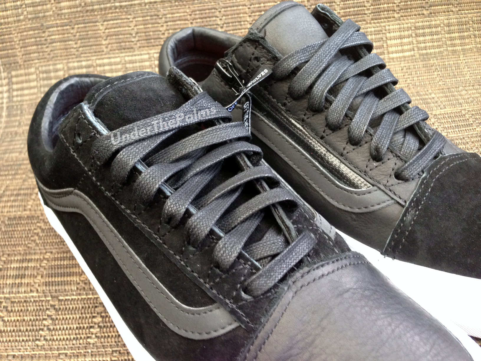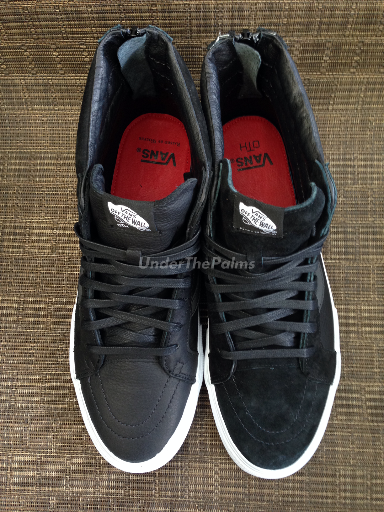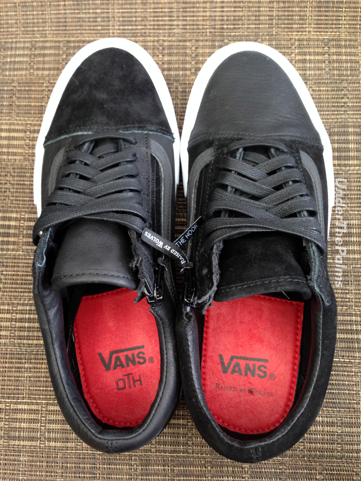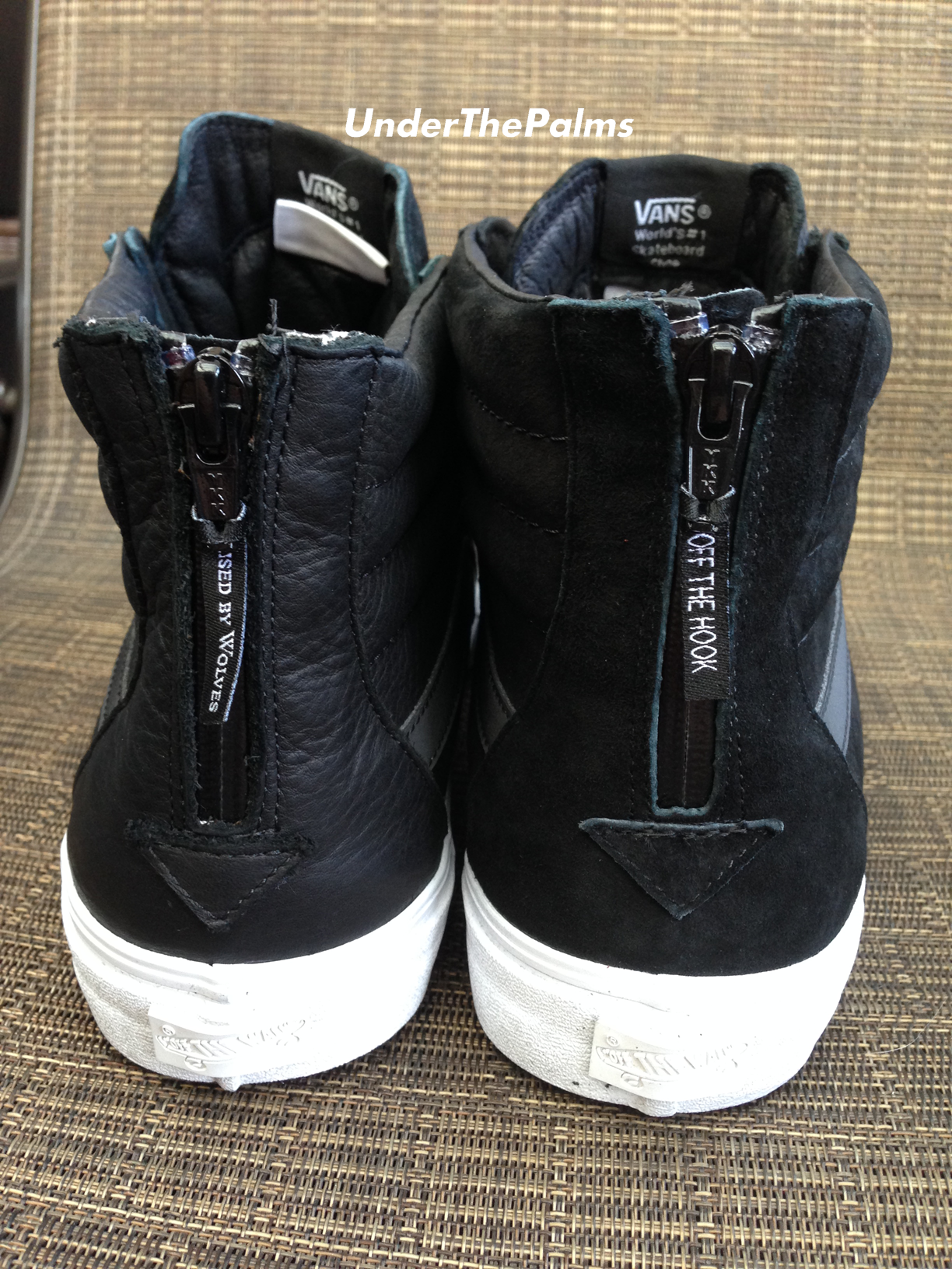 The Vault by Vans x OTH (Off The Hook) x RBW (Raised by Wolves) collaboration drops tomorrow morning, and the homies over at OTH were kind enough to allow us to get our pairs early. This pack is ridiculously awesome. There are so many cool details in each shoe, and everyone likes to talk about material, and that’s where this collection shines. It’s as if there was some sort of disagreement over how they wanted to lay out the materials on each shoe, so they came up with a compromise by inverting the suede and premium leather on the left and right feet. This has only been done by one other Vans collabo, and that’s the Engineered Garments Classic Slip-On LX series. These are by no means a copy-cat, as I feel there is way more going on, construction wise, with a Sk8-Hi Reissue Zip LX and an Old Skool Zip LX. Each shoe looks absolutely perfect in it’s own right, and if these came in either mock-up, I would still buy it in an instance. You might think that an all black colorway is getting quite tiresome, but when you focus on high end materials and minor details like the triangle stitching on the lace eye rows, the red stripe on the MTE outsole, and the dual-branding on the tongue tag and zipper pulls, then you’ve definitely got something that’s not quite so common anymore. Each pair comes with black flat waxed laces, 3M rope laces, and white flat waxed laces. To top off this release, each shoe comes in a heavy duty drawer box with dustbag, and there’s even a cool bottle opener key chain! If you’re on the fence, I hope my realistic iphone pics and angles in natural outdoor lighting will help you decide if you will be copping a pair, but honestly don’t sleep. I don’t think these will be around long.