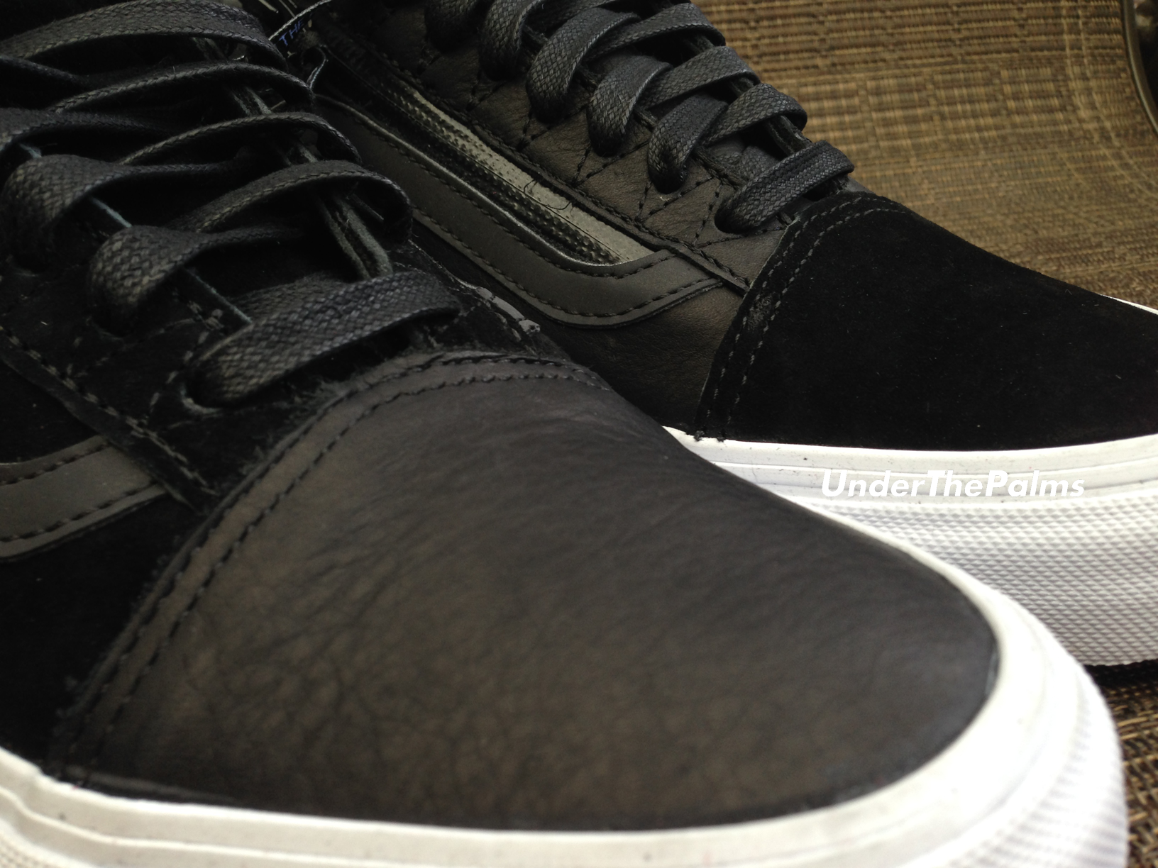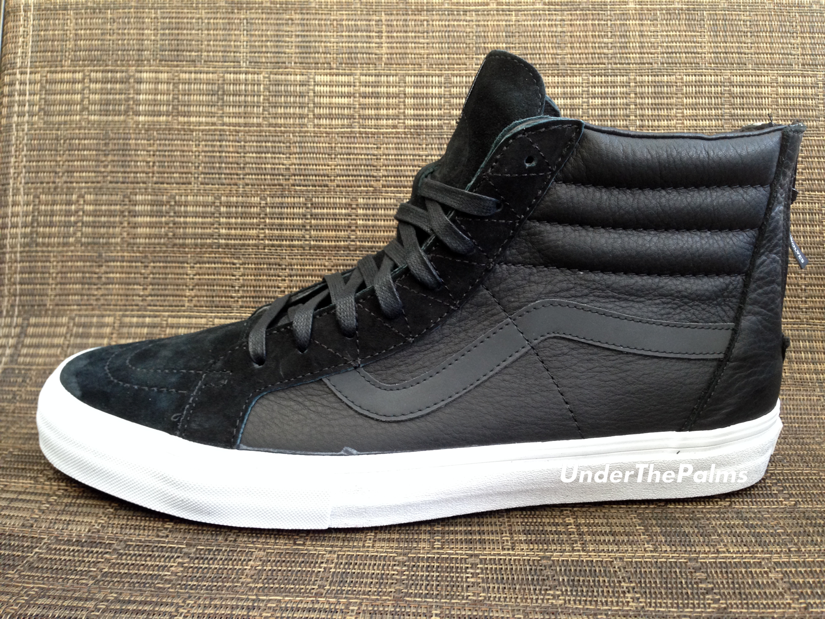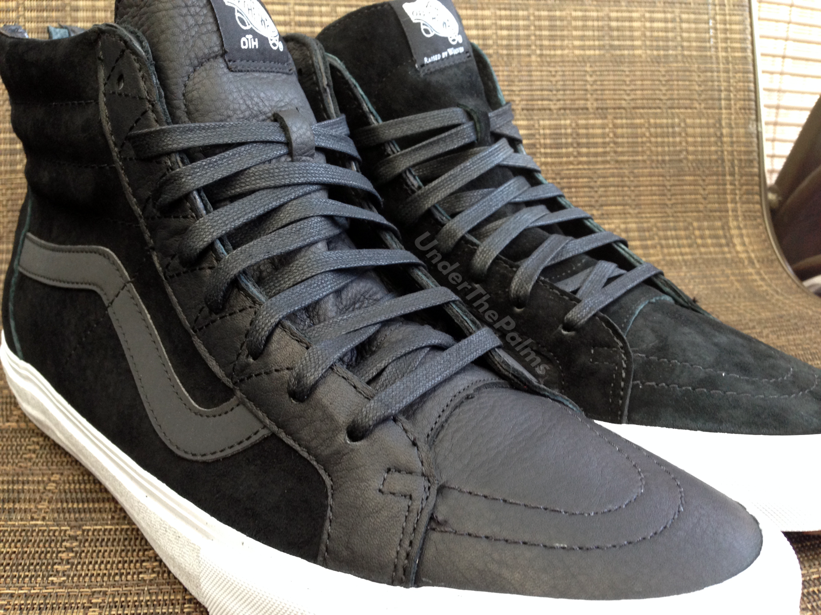 The Vault by Vans x OTH (Off The Hook) x RBW (Raised by Wolves) collaboration drops tomorrow morning, and the homies over at OTH were kind enough to allow us to get our pairs early. This pack is ridiculously awesome. There are so many cool details in each shoe, and everyone likes to talk about material, and that’s where this collection shines. It’s as if there was some sort of disagreement over how they wanted to lay out the materials on each shoe, so they came up with a compromise by inverting the suede and premium leather on the left and right feet. This has only been done by one other Vans collabo, and that’s the Engineered Garments Classic Slip-On LX series. These are by no means a copy-cat, as I feel there is way more going on, construction wise, with a Sk8-Hi Reissue Zip LX and an Old Skool Zip LX. Each shoe looks absolutely perfect in it’s own right, and if these came in either mock-up, I would still buy it in an instance. You might think that an all black colorway is getting quite tiresome, but when you focus on high end materials and minor details like the triangle stitching on the lace eye rows, the red stripe on the MTE outsole, and the dual-branding on the tongue tag and zipper pulls, then you’ve definitely got something that’s not quite so common anymore. Each pair comes with black flat waxed laces, 3M rope laces, and white flat waxed laces. To top off this release, each shoe comes in a heavy duty drawer box with dustbag, and there’s even a cool bottle opener key chain! If you’re on the fence, I hope my realistic iphone pics and angles in natural outdoor lighting will help you decide if you will be copping a pair, but honestly don’t sleep. I don’t think these will be around long.