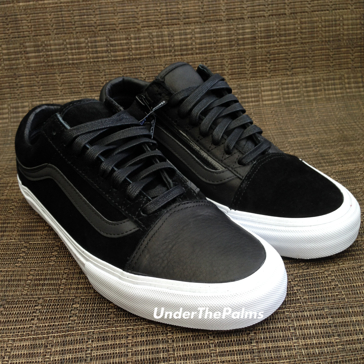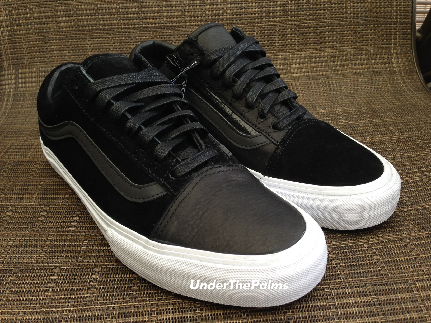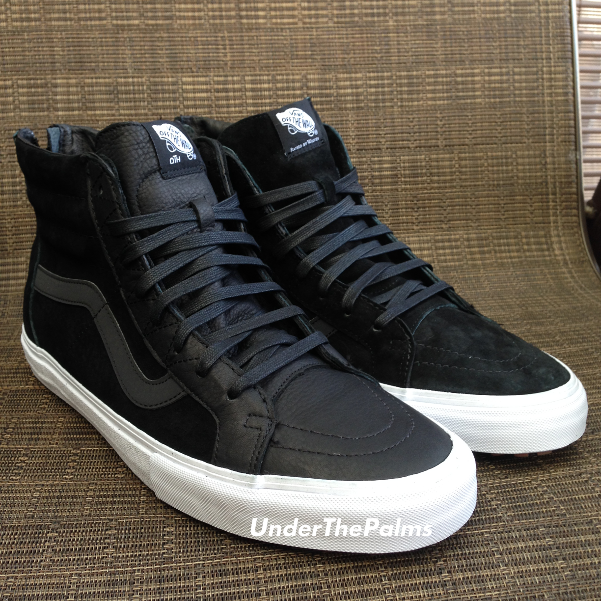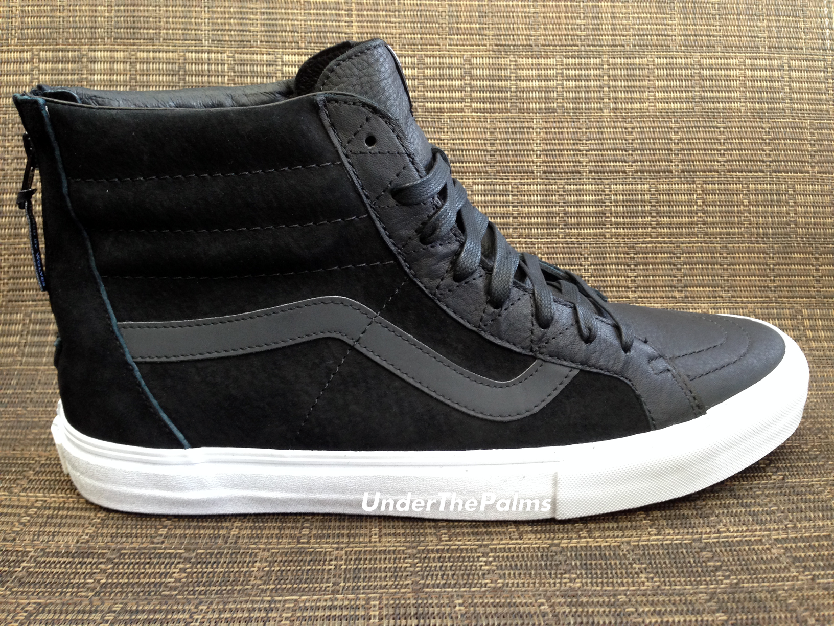 The Vault by Vans x OTH (Off The Hook) x RBW (Raised by Wolves) collaboration drops tomorrow morning, and the homies over at OTH were kind enough to allow us to get our pairs early. This pack is ridiculously awesome. There are so many cool details in each shoe, and everyone likes to talk about material, and that’s where this collection shines. It’s as if there was some sort of disagreement over how they wanted to lay out the materials on each shoe, so they came up with a compromise by inverting the suede and premium leather on the left and right feet. This has only been done by one other Vans collabo, and that’s the Engineered Garments Classic Slip-On LX series. These are by no means a copy-cat, as I feel there is way more going on, construction wise, with a Sk8-Hi Reissue Zip LX and an Old Skool Zip LX. Each shoe looks absolutely perfect in it’s own right, and if these came in either mock-up, I would still buy it in an instance. You might think that an all black colorway is getting quite tiresome, but when you focus on high end materials and minor details like the triangle stitching on the lace eye rows, the red stripe on the MTE outsole, and the dual-branding on the tongue tag and zipper pulls, then you’ve definitely got something that’s not quite so common anymore. Each pair comes with black flat waxed laces, 3M rope laces, and white flat waxed laces. To top off this release, each shoe comes in a heavy duty drawer box with dustbag, and there’s even a cool bottle opener key chain! If you’re on the fence, I hope my realistic iphone pics and angles in natural outdoor lighting will help you decide if you will be copping a pair, but honestly don’t sleep. I don’t think these will be around long.