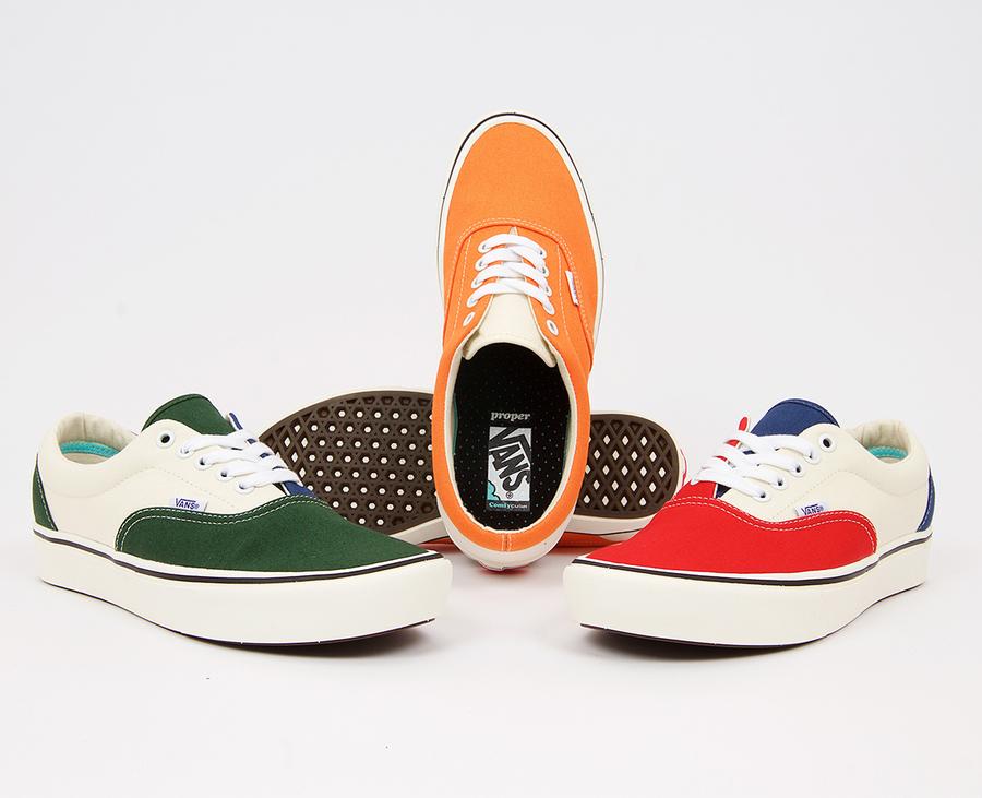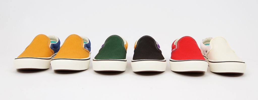 “Someone once said that most great ideas start off as bad ones, so it was no surprise when our initial pitch to Vans to work on the new ComfyCush platform was met with some cautious trepidation. The concept was simple, to bring the excitement and discovery of the Vans warehouse sales we enjoyed as Southern California youths to a younger generation that would never have the opportunity to experience it. Our presentation consisted of a simple color palette of heavy weight canvas and suede, and some shoes. Hundreds of shoes in fact, page after page of Eras, Slip-Ons, and Sk8-Hi’s in a never ending number of color combinations. Mono-tones, duo-tones, tri-tones, quad-tones the list went on and on. Symmetrical, asymmetrical, mis-matched and everything in between. Only when the raw material began to arrive did the real work began. Unhindered by design briefs, Proper’s very own Jordan Curry set fourth on a process of organic creativity in canvas and suede. Day after day, week after week he immersed himself in the process emerging only to share his latest masterpiece. Steadfast in his dedication to avoid repetition each pair was a unique creation, a true manifestation of the original concept, from mild to wild and everything in between, no two pairs the same. Perfectly imperfect.