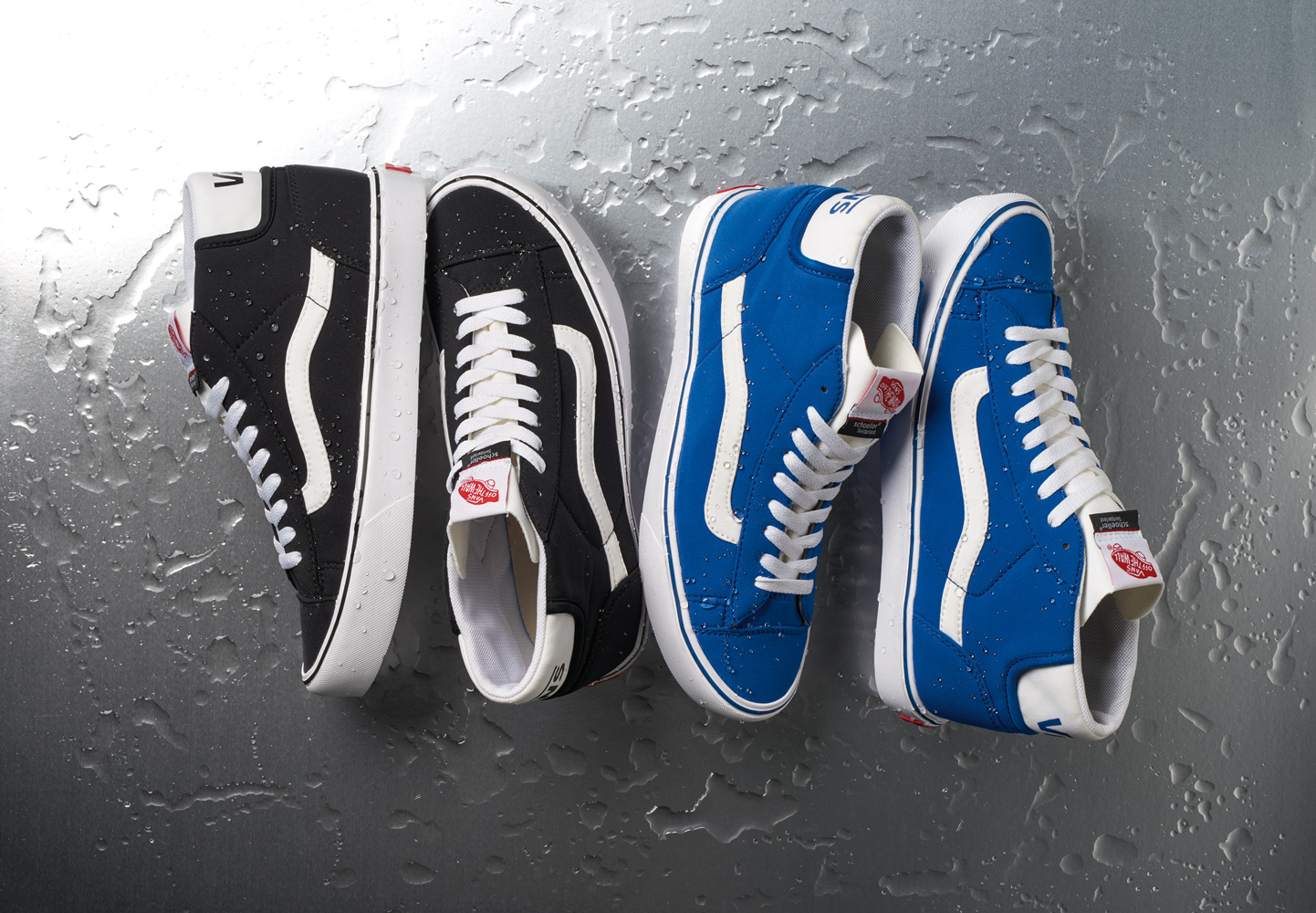 For the collection, Vault by Vans x Schoeller utilizes fabrications equipped for wet elements across Vans’ classic silhouettes including the Mid Skool Lite LX and the Authentic ’66 Lite LX in shades blue, green, pink and off white. Vans incorporates its Classic Lites construction that features UltraCush™ Lite technology and an ActionFit™ last shape to re-engineer the iconic footwear styles with increased comfort, improved fit and an overall weight reduction. Emblematic of Vans legacy while signifying its progressive design ethos, the Authentic Lite and Mid Skool Lite are modified versions of their original vulcanized forms, presenting a diverse assortment of lightweight and comfort-driven Vans Classics.