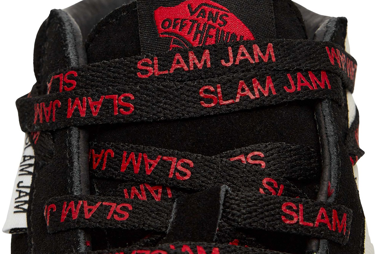 This is where Slam Jam comes in, adding its distinctive punkish undertones alongside touches that make this pair fit into the label’s (Un)Corporate Uniform ideology. The sneaker now sports an inverted internal and external colorway, with black suede meeting ecru canvas across the uppers, sitting alongside branded waxed laces, a Slam Jam mid-panel tag, leather Vans stripes, and an upside-down circular “A” emblem embossed into the rear heel cups.