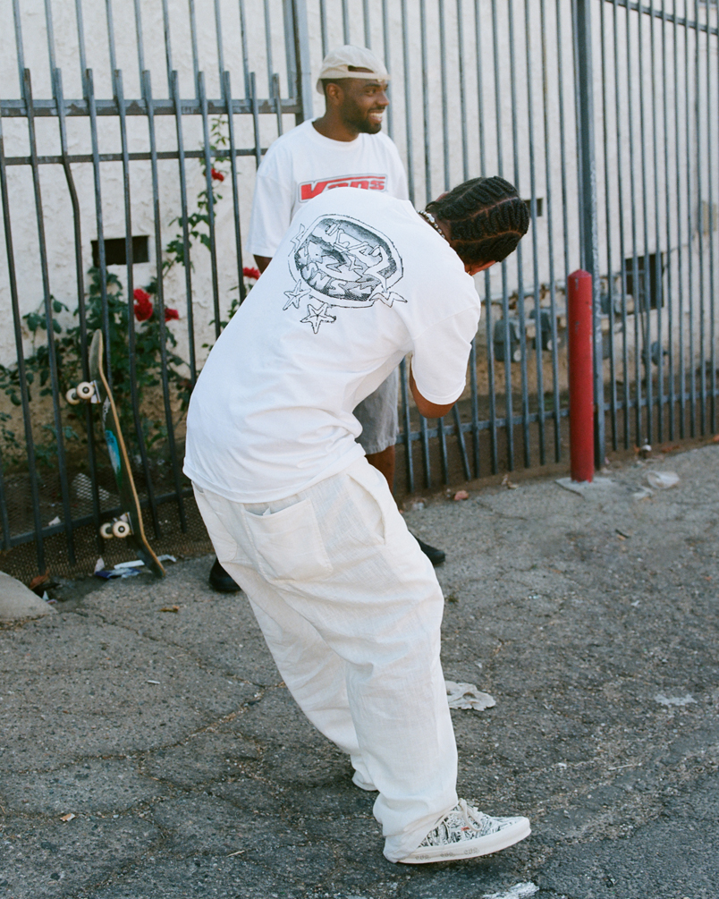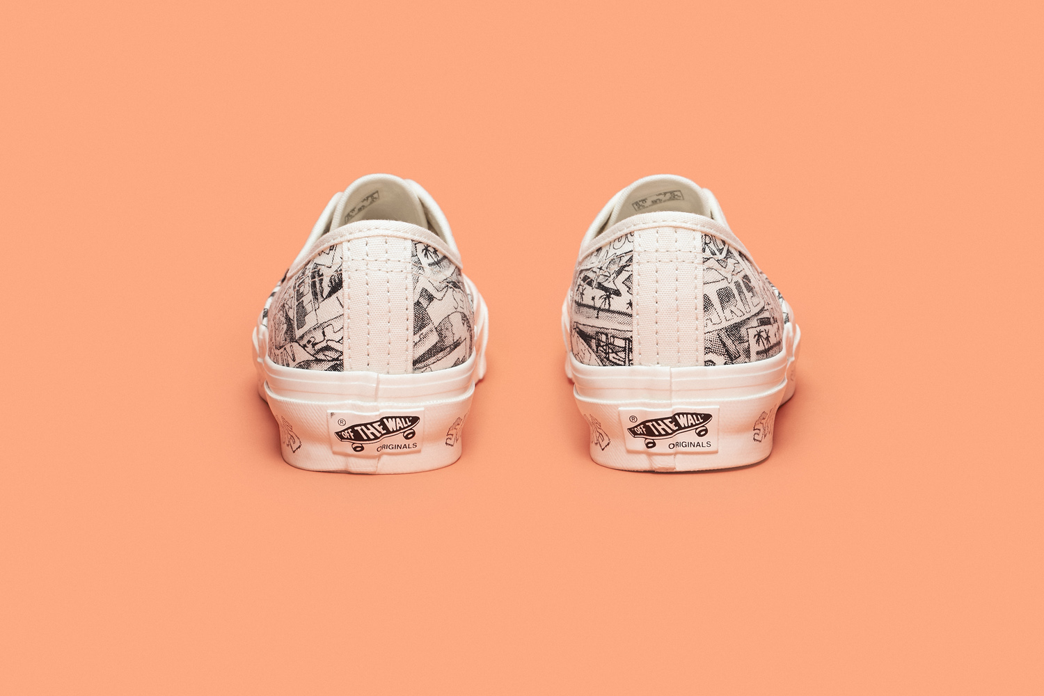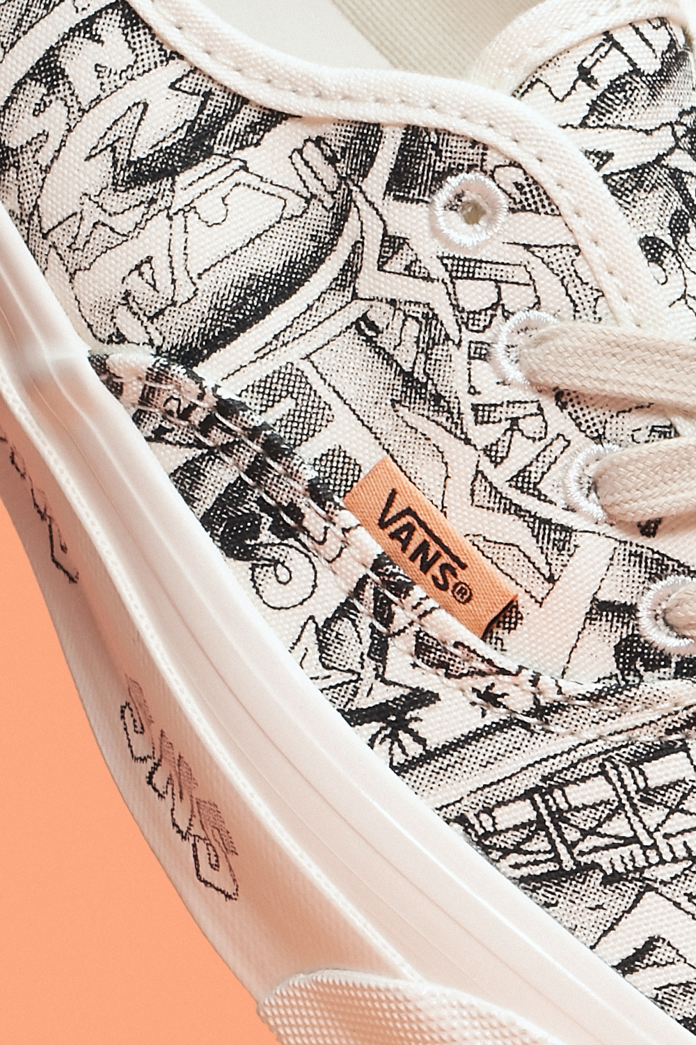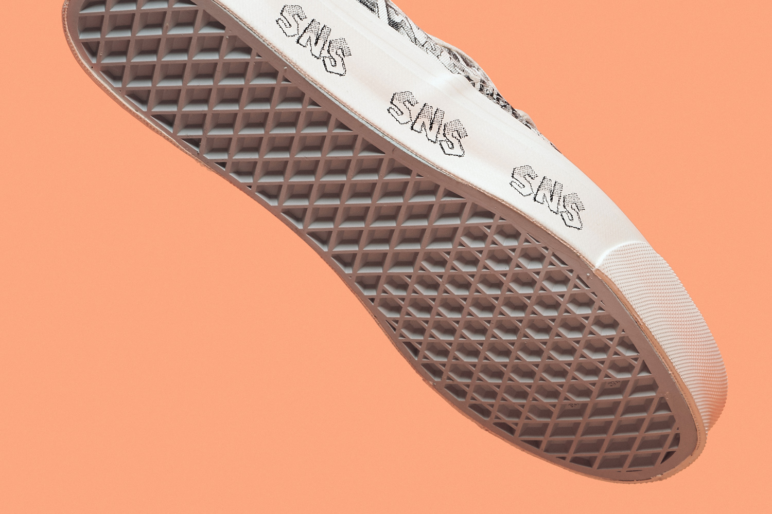 Crafted with signature canvas, a vulcanized midsole with “SNS” lettering and the iconic waffle outsole, the Authentic LX features the artwork printed all over the upper. The striking design is also featured on the premium cotton short-sleeve tee. Equipped with a chest and back print, the SNS t-shirt is followed by a summer-ready linen pant with an adjustable waistband, button closure, zip fly and several pockets to complete the Vault by Vans x SNS look.