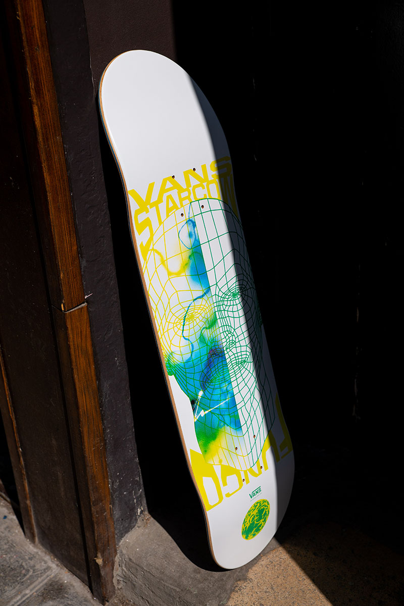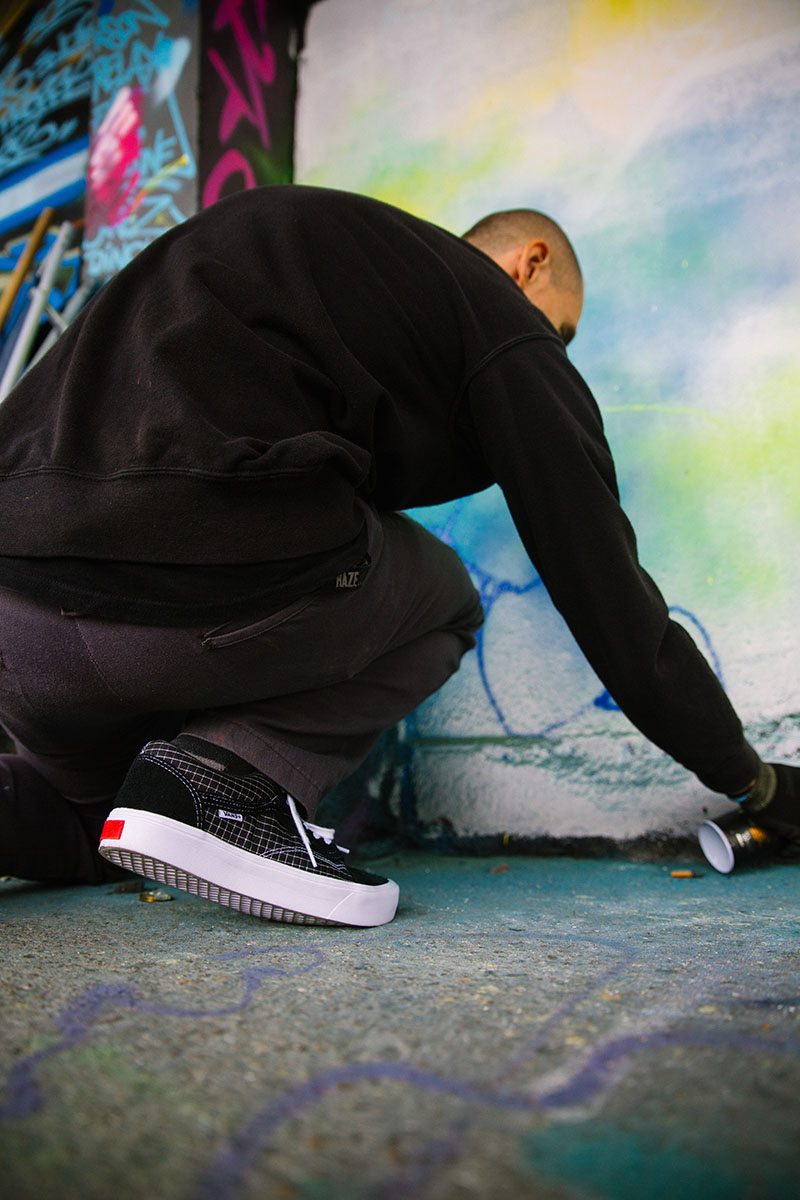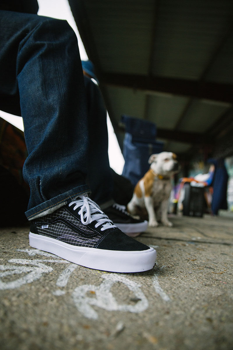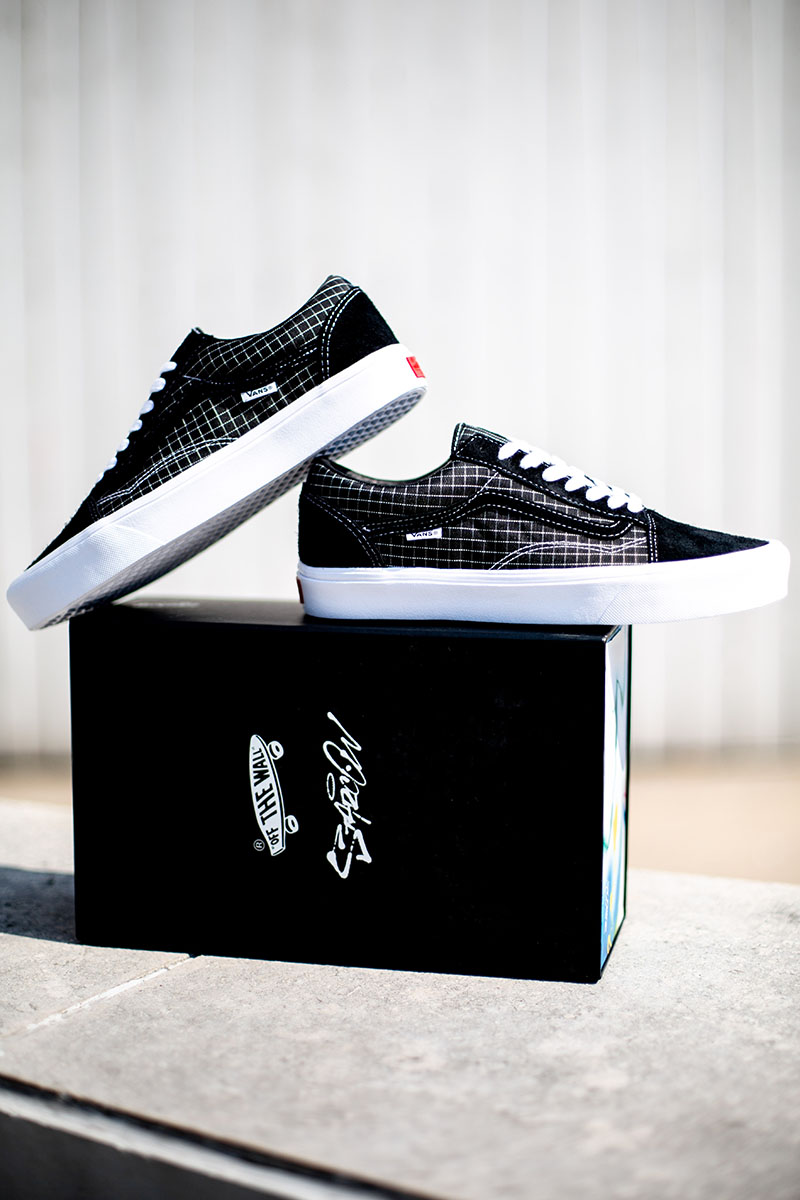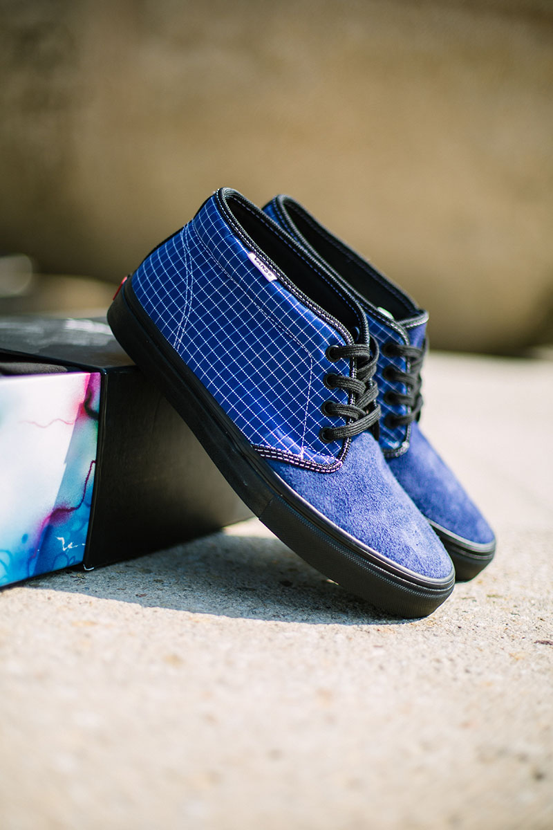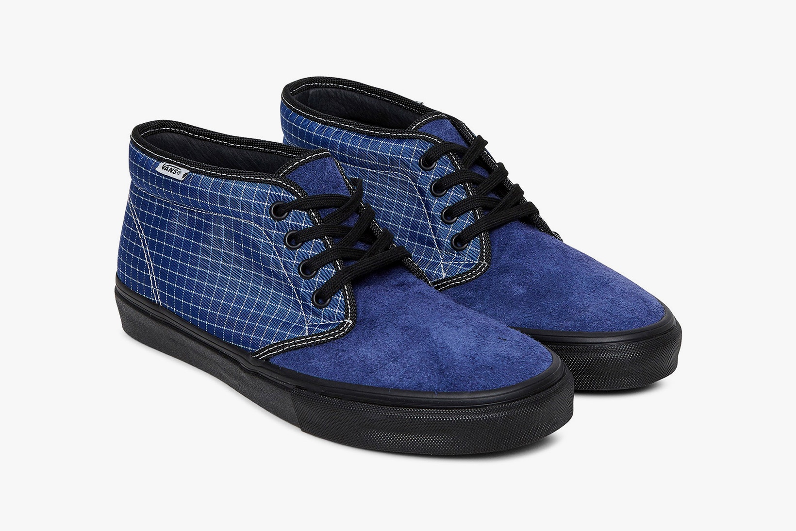 “Parisian boutique Starcow introduces a pair of collaborative Vans silhouettes, each sporting revised detailing. Both pairs feature bi-color blue/black or black/white makeups, with the laces and midsoles contrasting against tonal mesh and suede uppers. Juxtaposed against the unaltered suede panels are slim windowpane check patterns, complementing the contrast stitching seen throughout. The foxing stripe on the midsole has been removed, further emphasizing the red Vault license plate branding on the heel.”