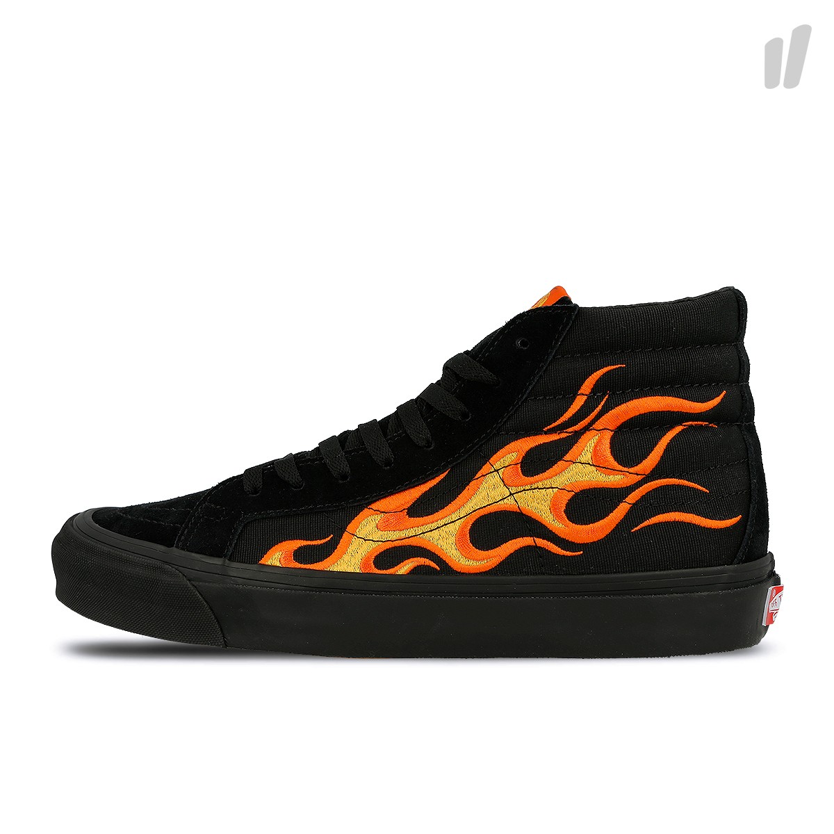 Thanks to Overkill, Berlin, we get a first sneak peek at the upcoming Vault x WTAPS collaboration. This pack has some design cues taken from prior Vault x WTAPS collections, as well as an all new wild design. Taking cues from the Fall 2013 collab, the OG Old Skool LX features the same “Surplus” canvas and suede design, in the same olive and navy colorways. It’s funny, because Vans created a GR version of this style shortly after the Vault one, which was a nice alternative to the absurd asking prices of the OG Sk8-Hi due to Kanye being seen in them. New heads won’t understand the reasoning why that shoe still resells for so high. Anyways, on to the OG Era LX. They take cues from the Fall 2015 collection, inspired by Steve Caballero’s original colorway of the Caballero, aka Full Cab, aka OG Full Cab, featuring a black suede and either grey or olive croc pattern on the side panels, while sitting on top of black midsoles. The newest and fresh design we have, are the “Ultra Litty” “Gucci LaFlame” “Flavor Town” OG Sk8-Hi LX, featuring an all black canvas and suede material, with a bold orange or blue flame graphic embroidered on the side panels of the shoe. Hate ’em or love ’em, they definitely stand out. There’s also another new design, by way of a digicamo Half Cab LX, which there’s also a matching digicamo longsleeve tee to go with it. There’s also a few other apparel pieces, and a duffel bag. Check them out after the jump.