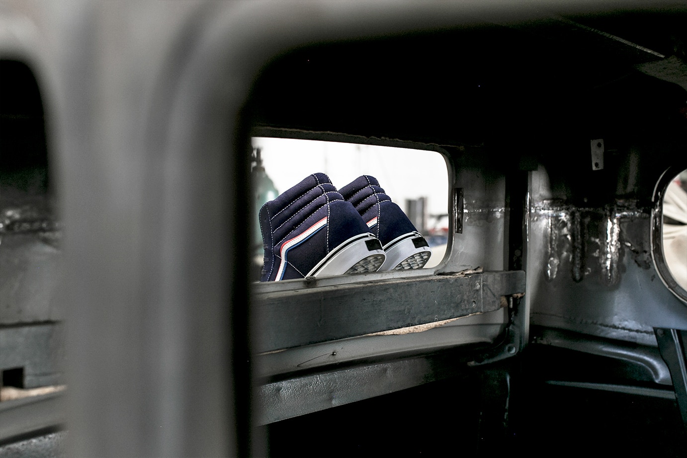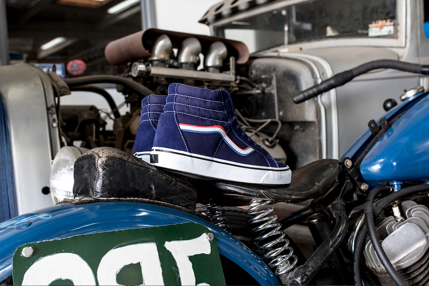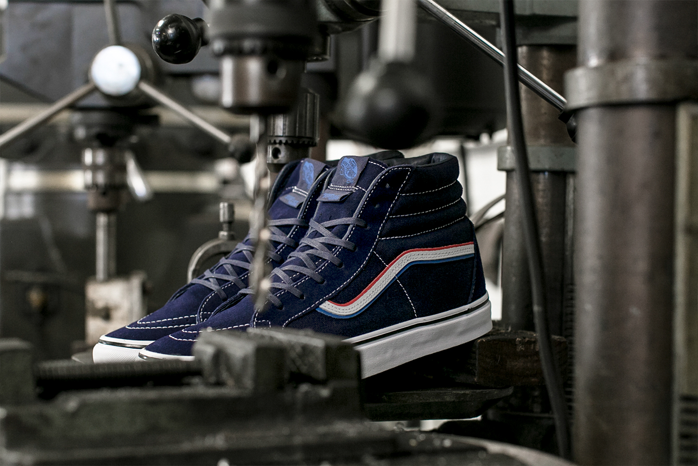 Southern California-based boutique, Blends, does a follow up to last-year’s collaborative OG Old Skool LX with Born Free and Vans Vault for the Orange County motorcycle show’s ninth annual meet. For this project the trio take to the OG Sk8-Hi LX model in a vibrantly rich Blue canvas and suede upper makeup. The shoe maintains the same key elements as its predecessor with a Red, White, and Blue Jazz-Stripe; a translucent checkerboard outsole as well as cobranding elements on the shoes’ tongue and footbed inserts.